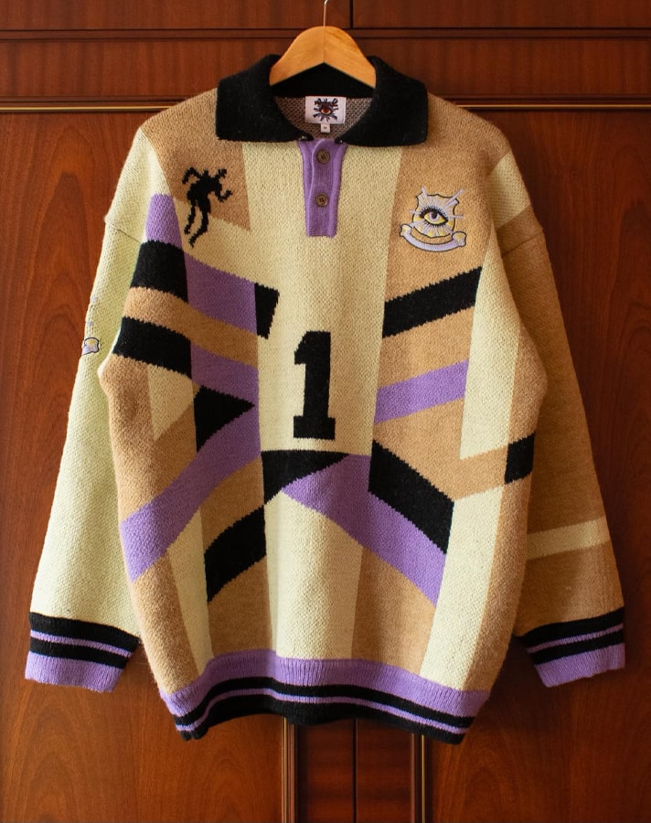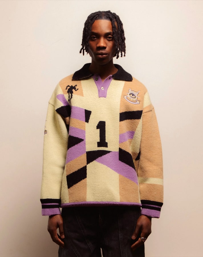 The tops are made from soft acrylic/nylon yarn with a heavy multi-layered knit construction, and boast a boxy silhouette. Club crests are replaced by House of Error branding, which also features big and bold on the rear of each design.