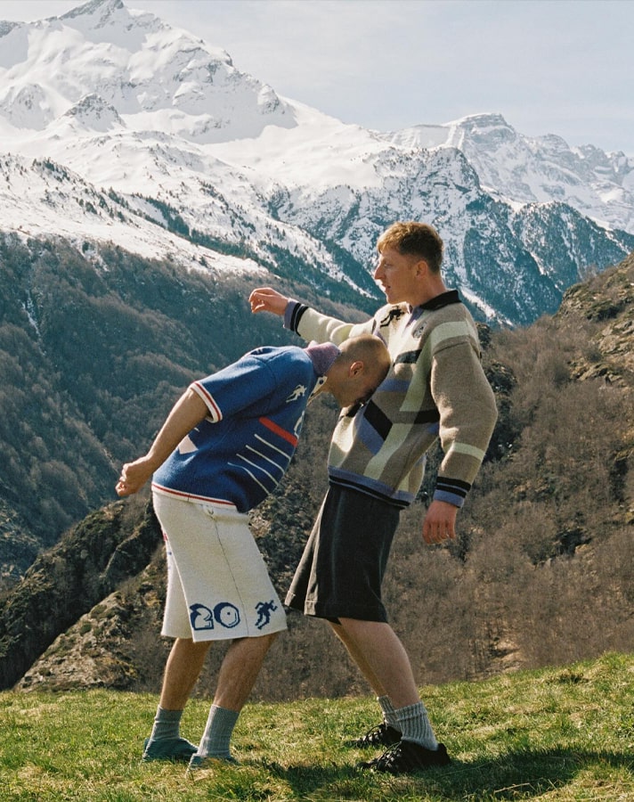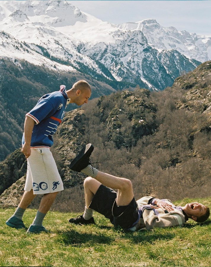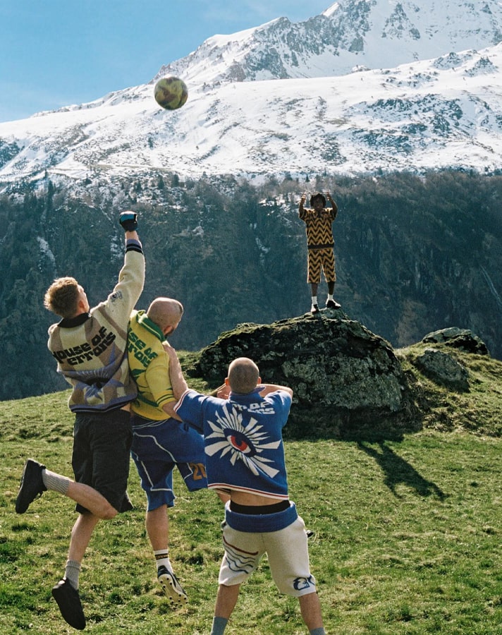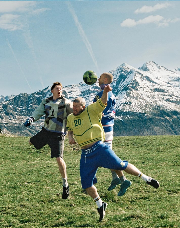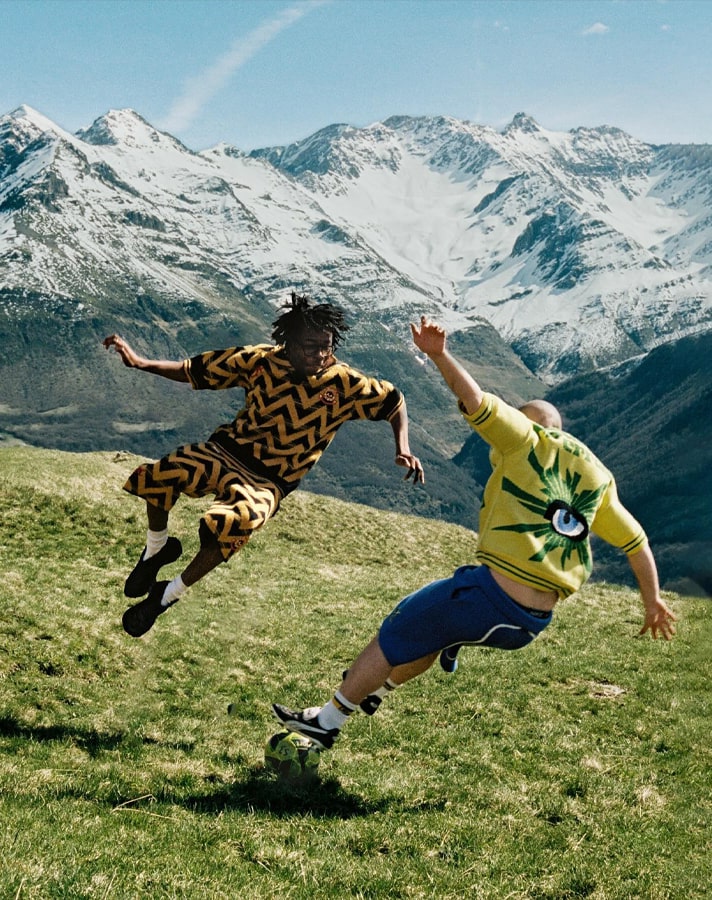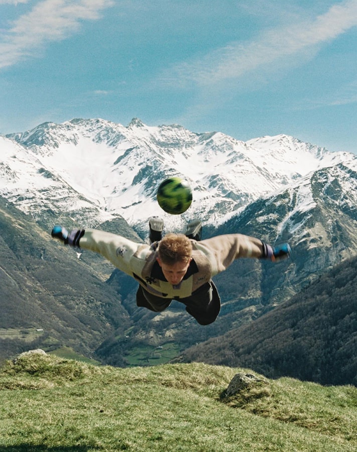 The now four-piece collection was shot in the Pyrenees by Tom Emmerson, with the models recreating iconic moments from the beautiful game, such as Zidane’s infamous last act as a professional player, with the glorious backdrop of the mountainous peaks.