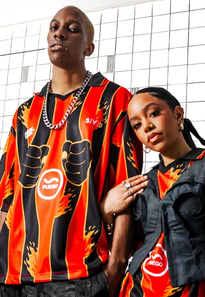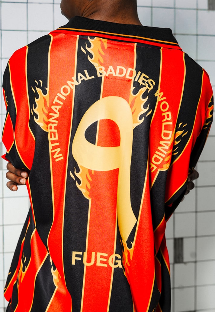 The collection is comprised of the aforementioned hero jersey – which sees a contemporary twist on a classic red and black striped design, featuring flame graphics and “Fuego” callouts (Spanish for fire), completed with a classic collar – and two complementary shirts. All feature the “International Baddies Worldwide” slogan throughout, Together, the collection champions the ethos of individuality and the fearless pursuit of passions.