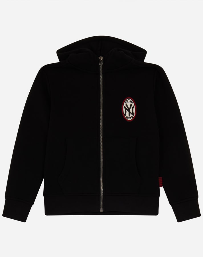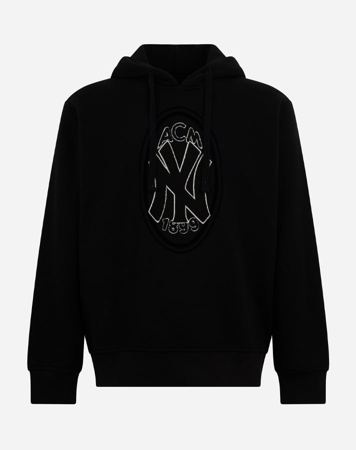 Featuring dual branding throughout, including stylised applications of the Yankees’ interlocking NY, the red-and-black crest of AC Milan and the distinctive script word marks of both teams, the collection is led by the capsule’s signature piece — the varsity jacket. Joining the jacket are further unique items for adults and children, including t-shirts, hoodies, sweaters, cardigans and New Era baseball caps and beanies. Other co-branded items include baseballs, playing cards and a notebook.