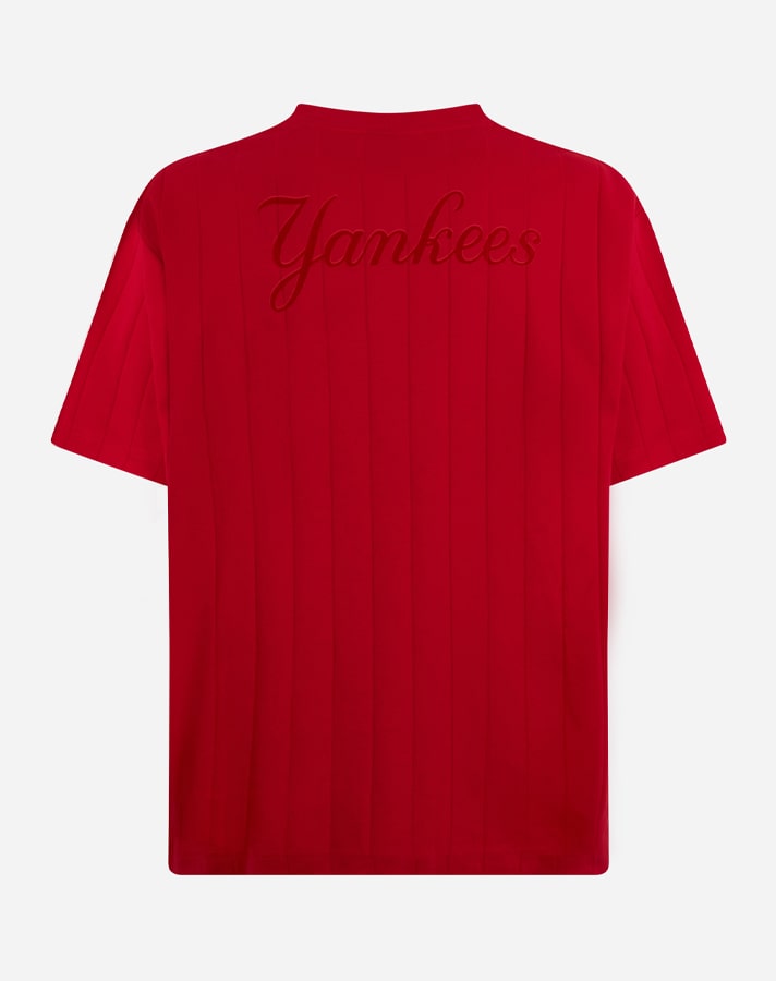 The collection comes in two distinct chromatic variations, each of which pays homage to the visual identity of both teams. In New York, the collection’s base colour will primarily be the Yankees’ navy blue, and in Milan, the primary base colours will be red and black.