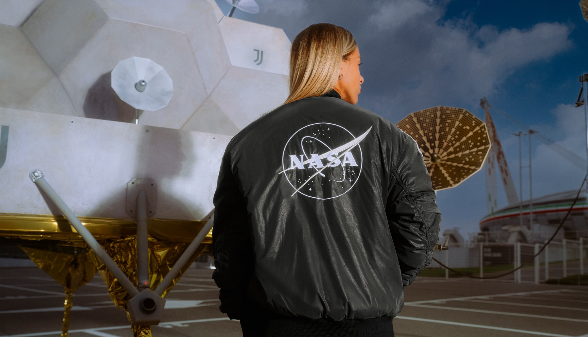 Then, drawing from the light and dark sides of the moon, there’s a reversible bomber jacket that offers two distinctive space-travel-inspired looks. Each side features a premium logo, along with removable Italy and USA flag patches. Juventus players will wear the jackets on-field when they walk out for the pre-match anthem ahead of their home match against Torino on 9 November.