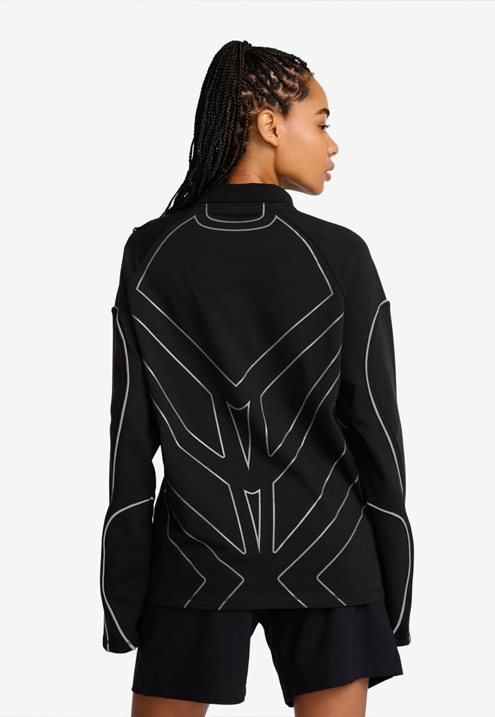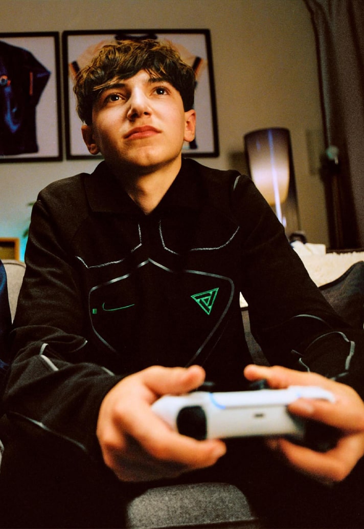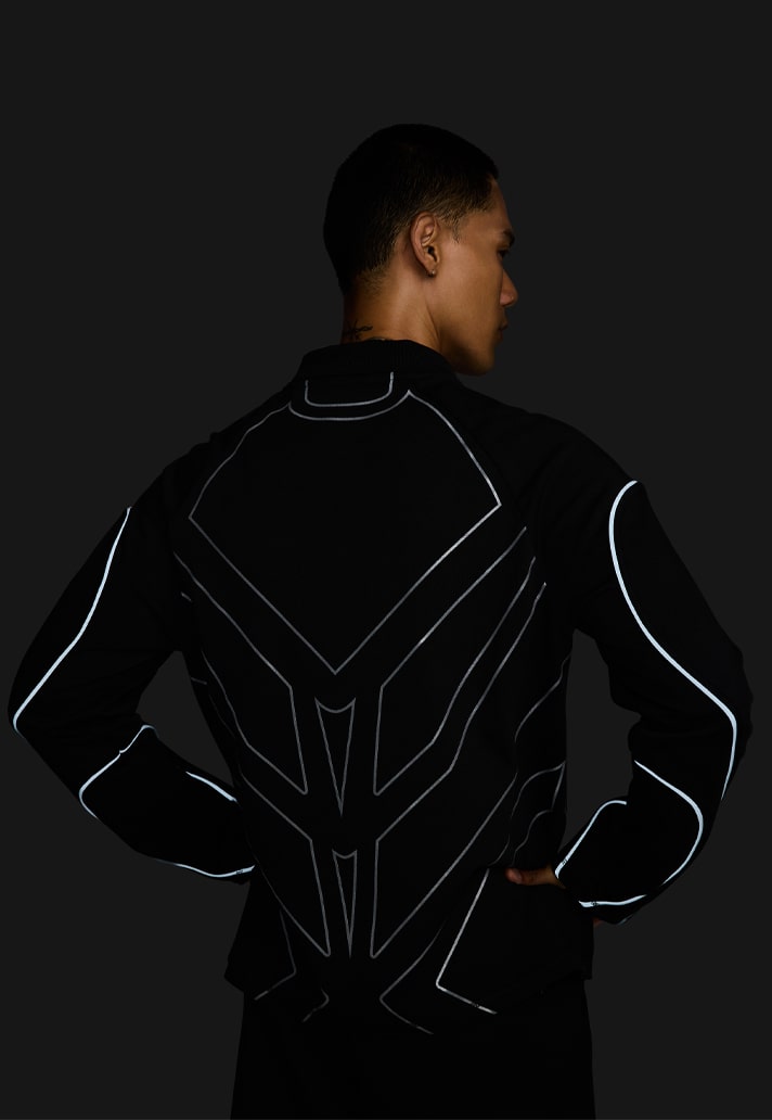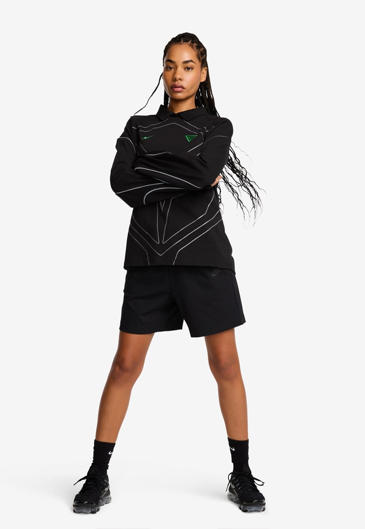 On to the design, and the Nike x EA SPORTS FC Founders LS shirt arrives as a tribute to the iconic silhouettes of ‘90s kits, establishing a new team identity rooted in youth culture, sport, and gaming. To be uber clear, the shirt is made exclusively for Founders: the biggest fans of the game. The Founders build the future of FC, and this piece is a celebration of their community. The shirt’s design references the virtual in-game kits Nike designed for Founders in EA SPORTS FC 25. It sees an almost luminescent piping detail effect throughout the black base, creating a futuristic ‘Tron’-style look, particularly apparent when the lights go out. The EA Sports and dotSwoosh logos stand out in green.