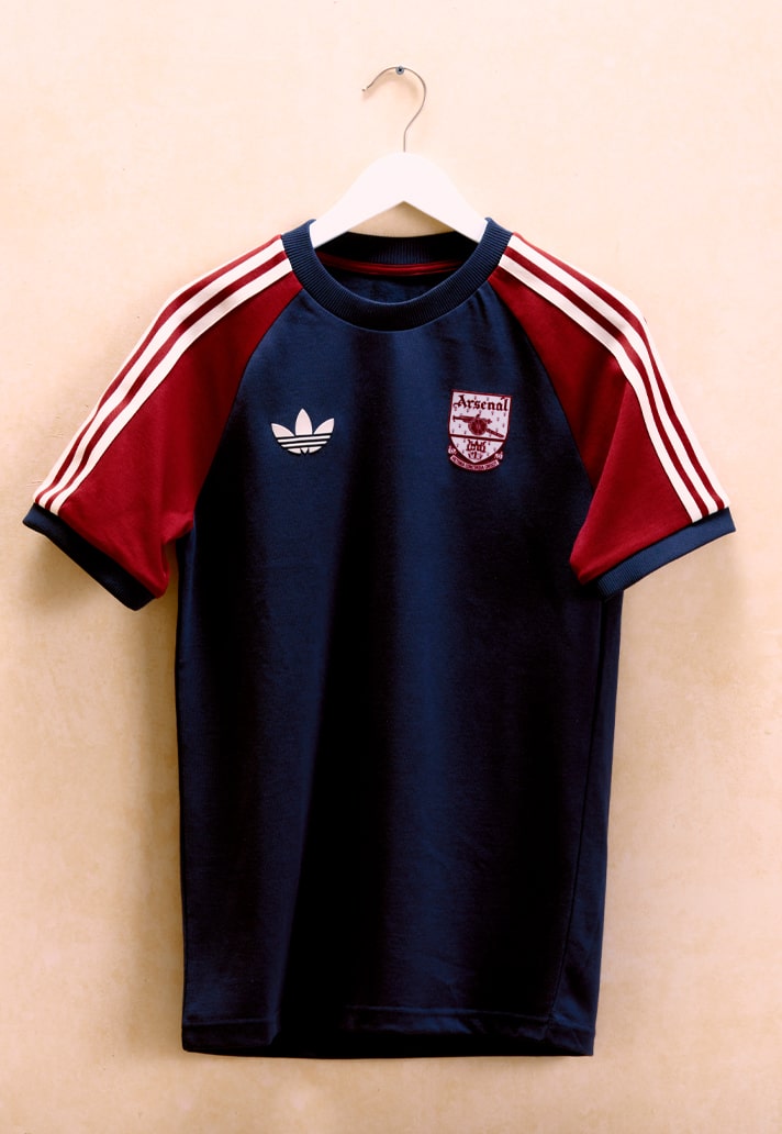 The Arsenal adicolor collection oozes retro class in red and blue and features the classic crest that appeared on the club’s jerseys between 1949-1994. The lettering used for the club’s name on the back of the tee and jacket is the same vintage font from the old club badge.