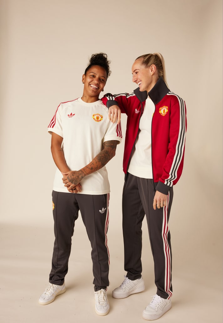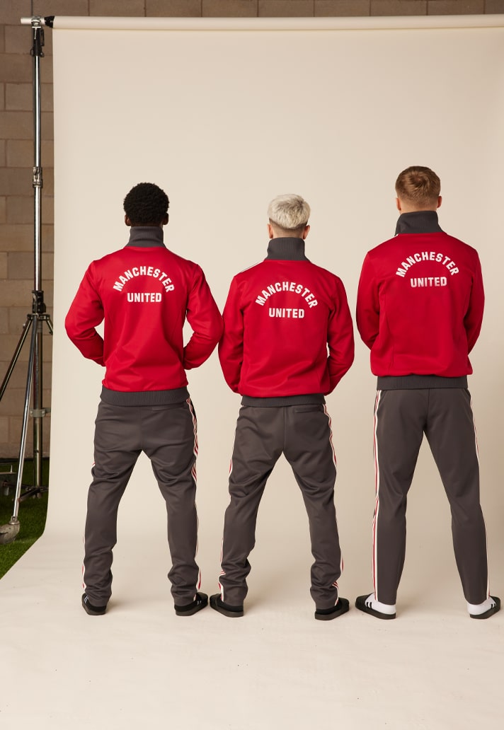The adicolor Manchester United collection takes its colour inspiration from the iconic red and black kits of the 80s and 90s. The club crest is the one last seen on United’s matchday jerseys in 1998, while the 80s-era lettering on the back of the track top completes the vintage look.