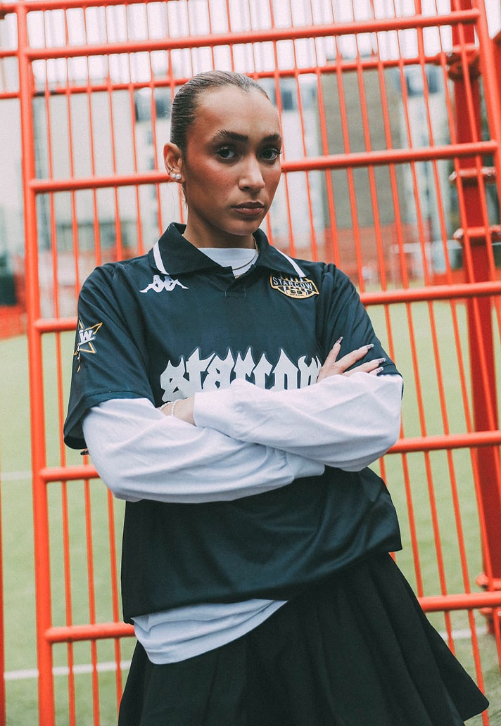 And so came this collaboration with Kappa. The shirt, designed entirely by the Starcow team, pays homage to the sporting heritage of Kappa's jerseys, while providing a modern and avant-garde touch, with special attention to detail. The black base provides the perfect canvas for the carefully thought-out typography that demands attention in the sponsor slot. The minimalist monochromatic design reflects the world of the streetwear scene that Starcow wanted to bring to this shirt, the perfect blend of sporty yet fashionable.