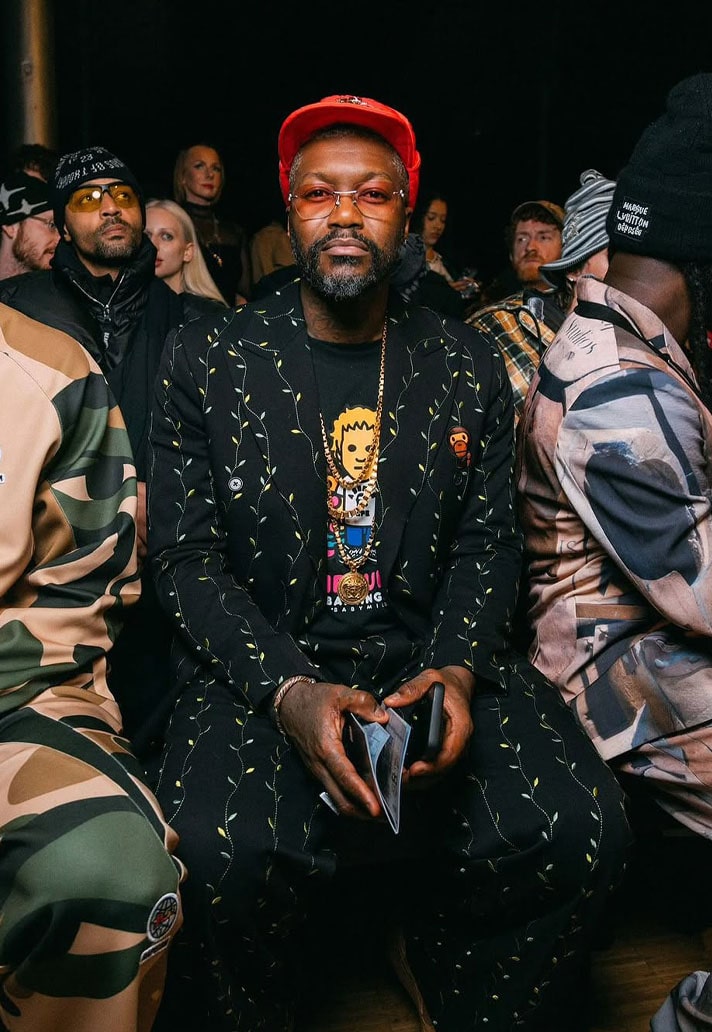 The former Liverpool player was also seen sitting front row at KidSuper and Willy Chavarria's debut show, wearing their KidSuper's latest collab with Bape.
