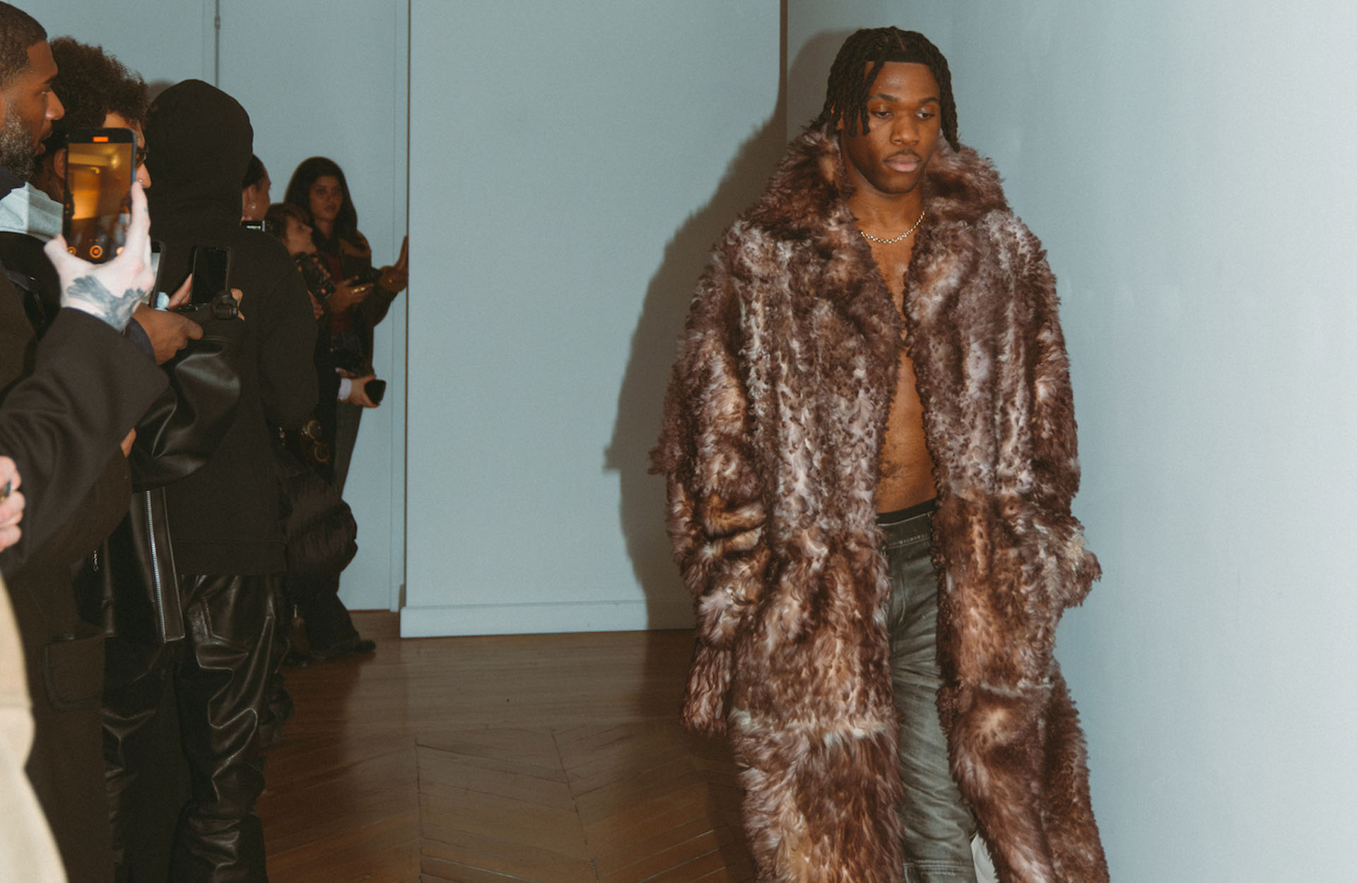 The former Liverpool player was also seen sitting front row at KidSuper and Willy Chavarria's debut show, wearing their KidSuper's latest collab with Bape.