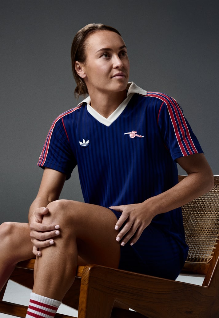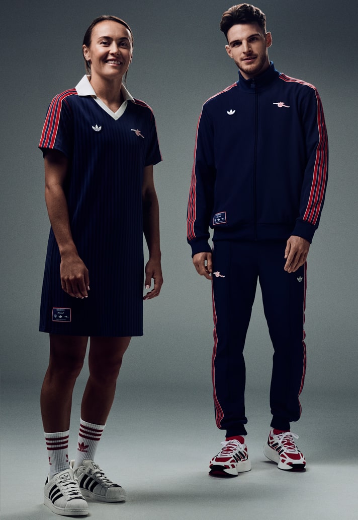 Following on from the reveal of collections for Bayern and Juventus yesterday, Arsenal are the latest club to get the retro refresh. The 11-piece capsule nods to the club’s rich heritage while embracing a modern aesthetic, channeling the effortlessly cool ‘80s football-fashion vibe with a signature navy and red-stripe palette.
