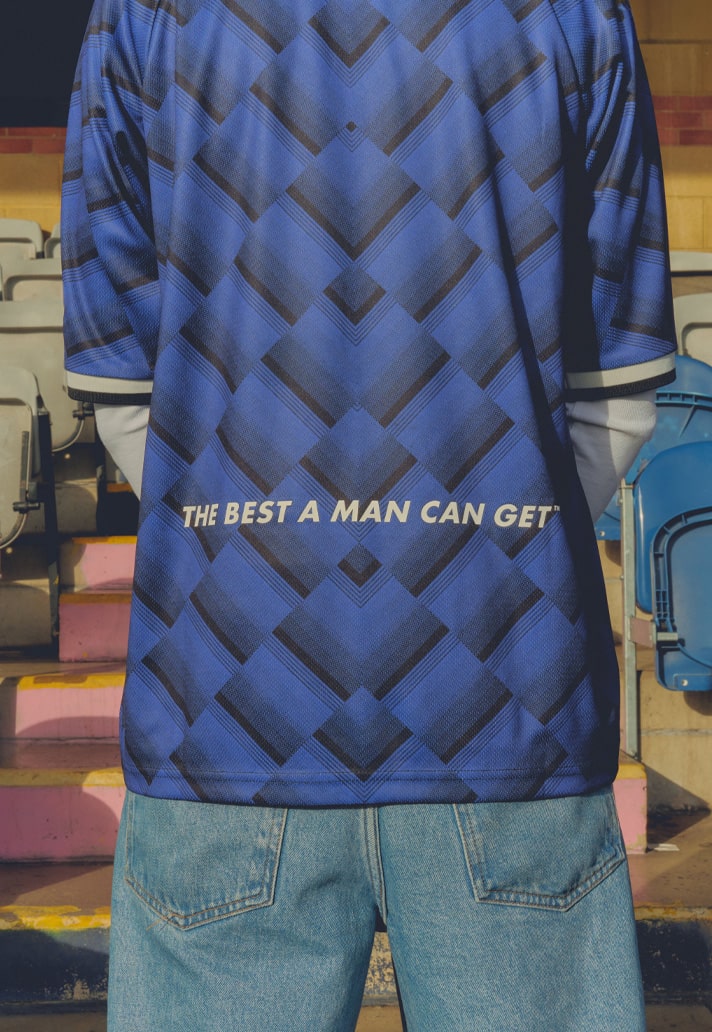 From an oversized fit to the vintage white collar, this shirt is reflective of the era of football the song originates from. Intentionally unmissable is ‘The Best A Man Can Get’ logo painted across the front of the shirt, mirroring the huge success and fame of the remake. The ‘Gillette-blue base’ is complemented by a stipple gradient repeat pattern, a nod to renowned kits from the 80’s as well as representing a razor shaving through stubble
