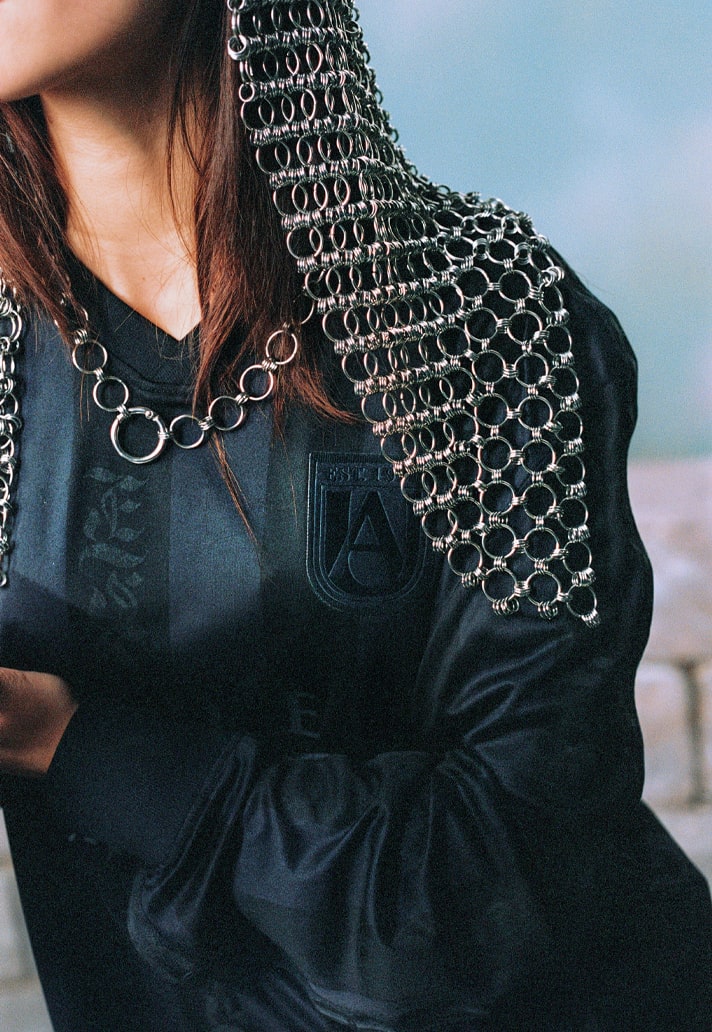 Each piece is a testament to the artistry behind the collection, with intricate details that echo the resilience and strength of medieval armour. The photo shoot reinforces this theme, capturing the collection in a way that feels timeless. Shot on analog film against a hand-painted backdrop, the imagery features lighting reminiscent of vintage portraits, creating an aesthetic that bridges the gap between history and modernity.