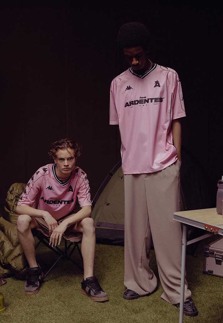 The capsule is made up of a variety of long and short sleeved t-shirts and jerseys, embracing Kappa's established sportswear background. Focused on bold visuals, the pieces embrace pink, blues and blacks across minimalistic designs. Each piece is crafted in a football jersey-like design, taking inspiration from the current global fixation of football fashion. Featuring on the chest is the esteemed Kappa Omini logo, alongside a custom 'A' logo designed by the French festival. Taking place of the sponsor is 'Les Ardentes' in its typical font – a clear representative of the festival. Pair it with jeans, jorts or a skirt, it doesn't matter, these look hard with anything.