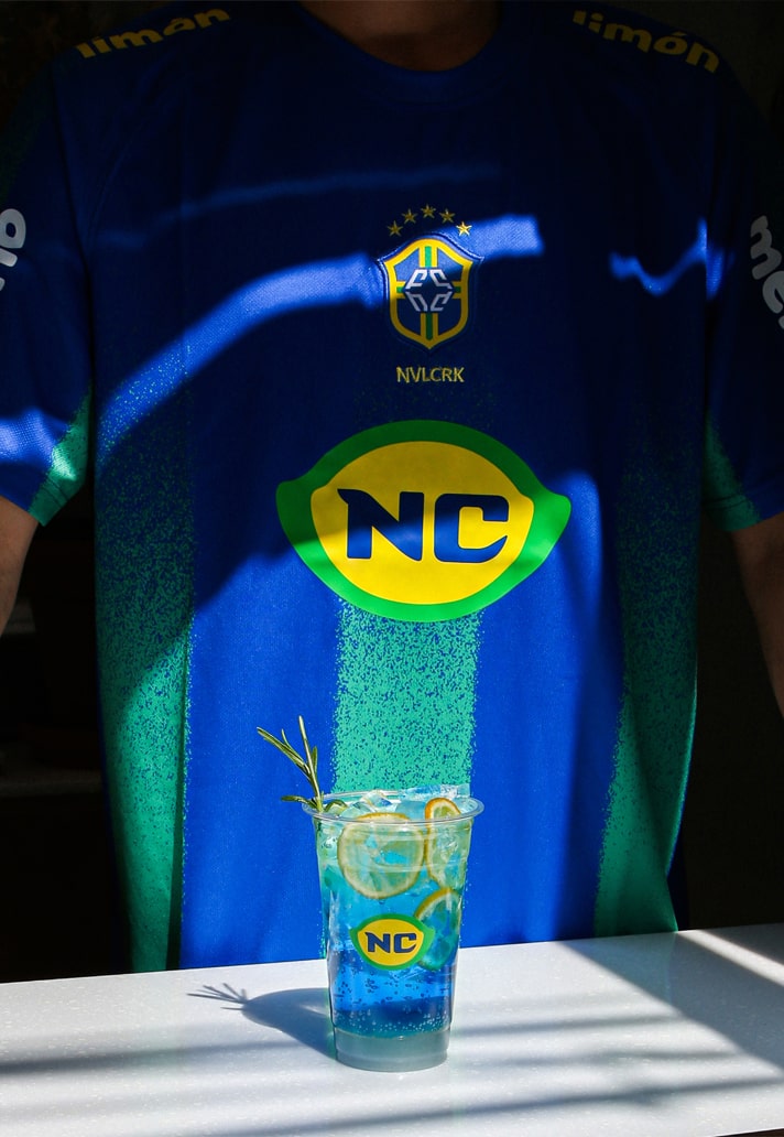 The jersey’s stripe pattern bubbles up the torso like carbonation in a tall glass of lemonade — refreshing in both concept and colourway. And at its heart, the NC logo takes on a new life, reworked into a citrus-charged homage to the iconic R9 emblem. It’s playful, punchy, and rooted in reverence.