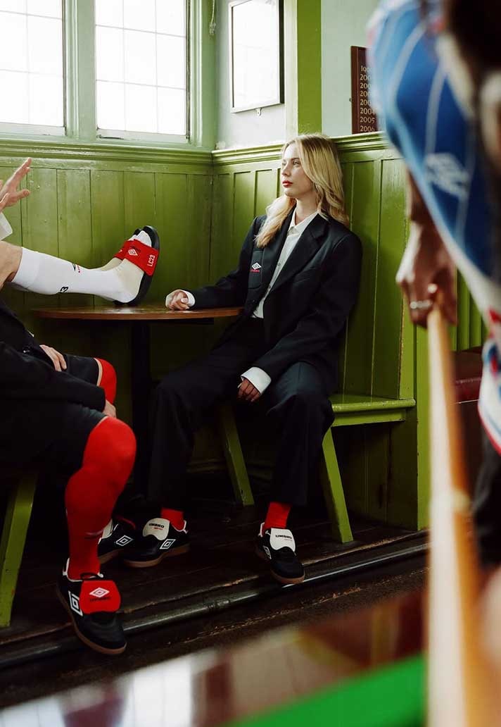 All the pieces bring a contemporary touch to Umbro classics, building on the foundations of looks that excelled during this era. A custom Speciali sneaker is re-imagined with a leather and suede upper, featuring a clean interchangeable tongue design. A clear stand-out of the collection is a classic beige trench coat, inspired by one of football’s most commanding figures on the touchline. It’s class and elegance make it hard not to love.