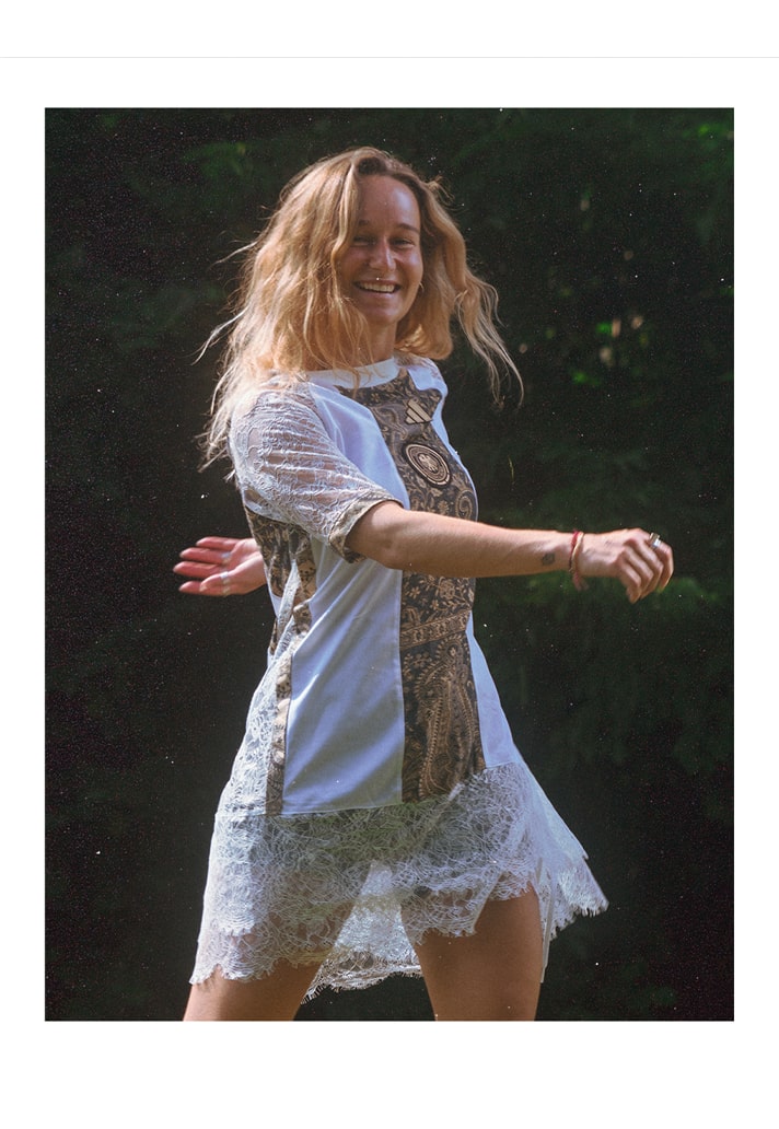For Clinton, this collaboration was an opportunity to channel her energy, imagination, and personal roots through a new medium. “Creating this piece with Slow Projects was a really special experience,” she says. “I wanted it to reflect my creativity & flare on the pitch, aligning with comfort. Wearability was a big factor for me. I feel like the piece is slightly out of my comfort zone in my day-to-day apparel, but once I wore it, I felt confident & at ease.”