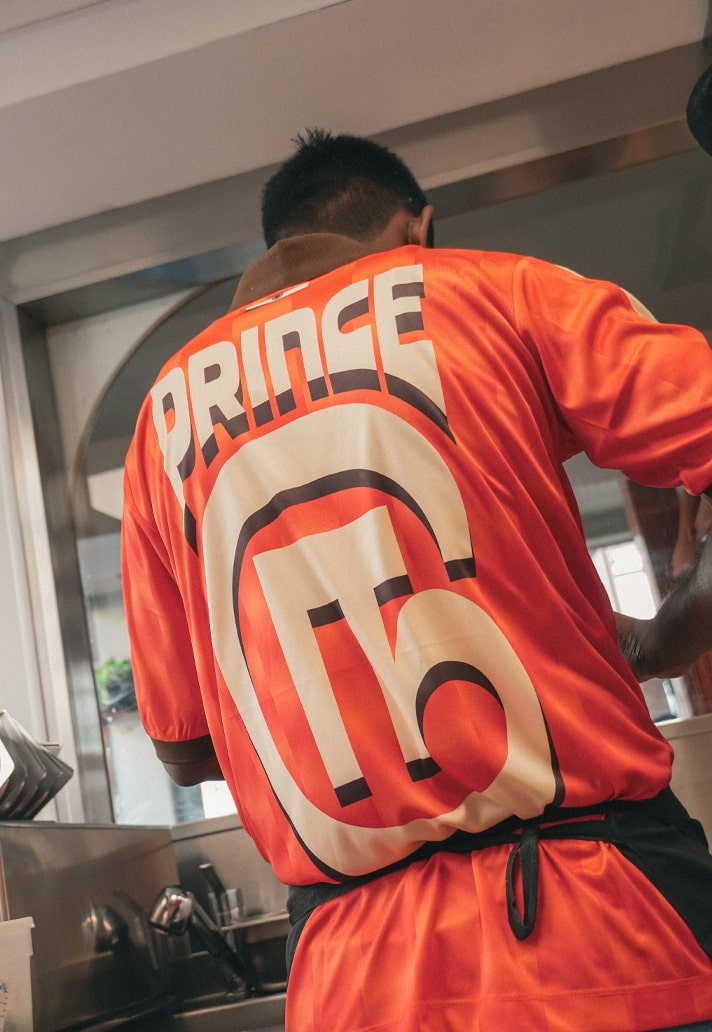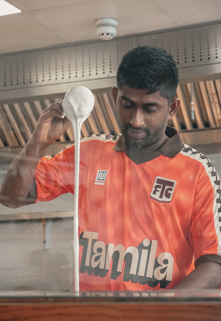 People have been asking us for years about merch,” says Glen Leeson, co-founder of The Tamil Prince. “But we didn’t want to do it just for the sake of it. When we started talking to the MEYBA team over a few beers and a biryani, it just clicked. Curry, pints and football. What else do you need?