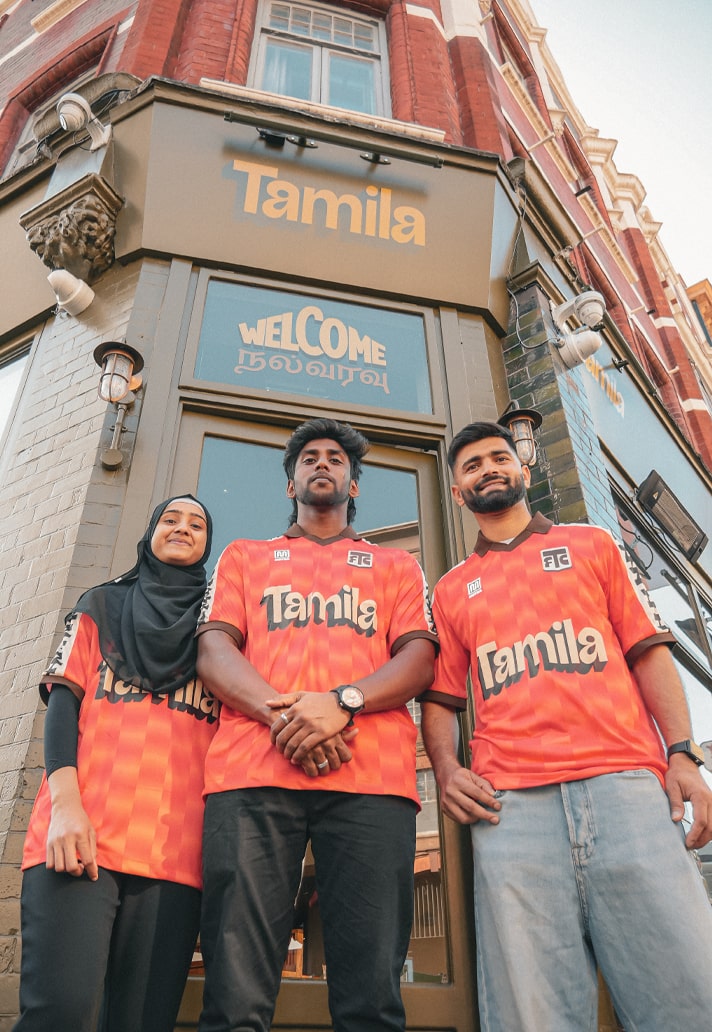 The MEYBA x Tamila jersey lands as a slice of nostalgia reimagined, a proper terrace classic rebuilt with Tamila’s identity woven through every thread. On the chest, an embroidered Tamil Football Club badge anchors the story – designed exclusively for this collab – while the palette draws straight from the rich, spice-laden tones of Tamila’s curry houses in King’s Cross and Clapham. It’s football heritage re-seasoned for today.