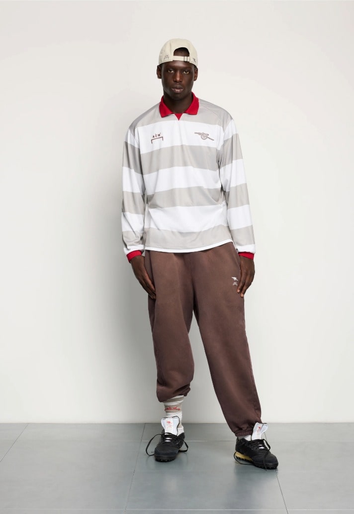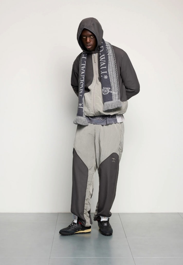 The lineup cuts across the full streetwear spectrum: jackets, tracksuits, trousers, caps, beanies, polos, tees, hoodies, and a range of accessories, from scarves and socks to an unexpected Gunnersaurus model reimagined through the A-COLD-WALL* lens, wearing the collaboration’s bespoke Derby kit.