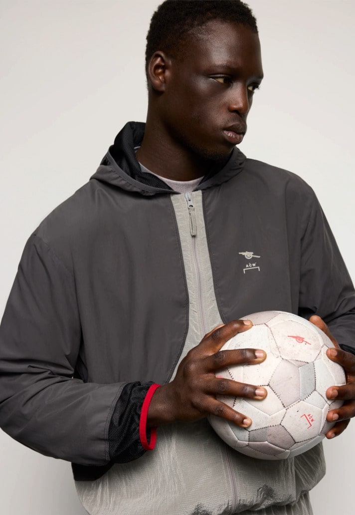 A-COLD-WALL* framed the project as: “A collaboration rooted in Arsenal’s storied heritage deconstructed and recontextualised through the industrial lens of A-COLD-WALL*, this partnership sees traditional house codes reshaped with a contemporary edge.