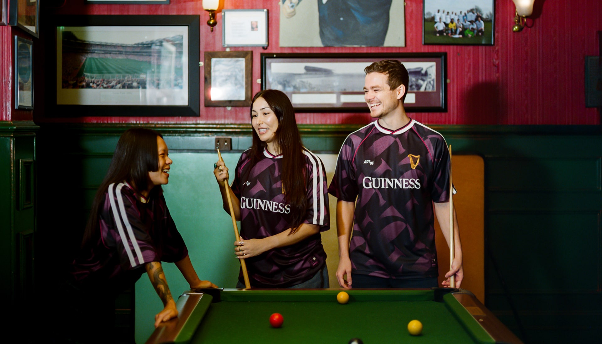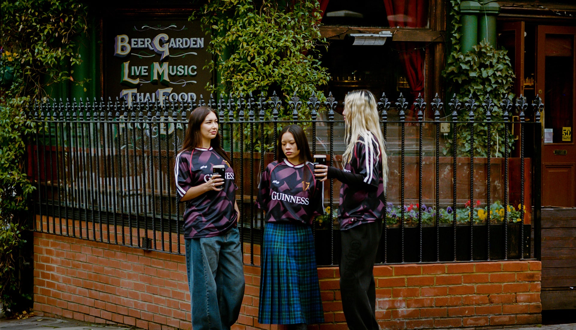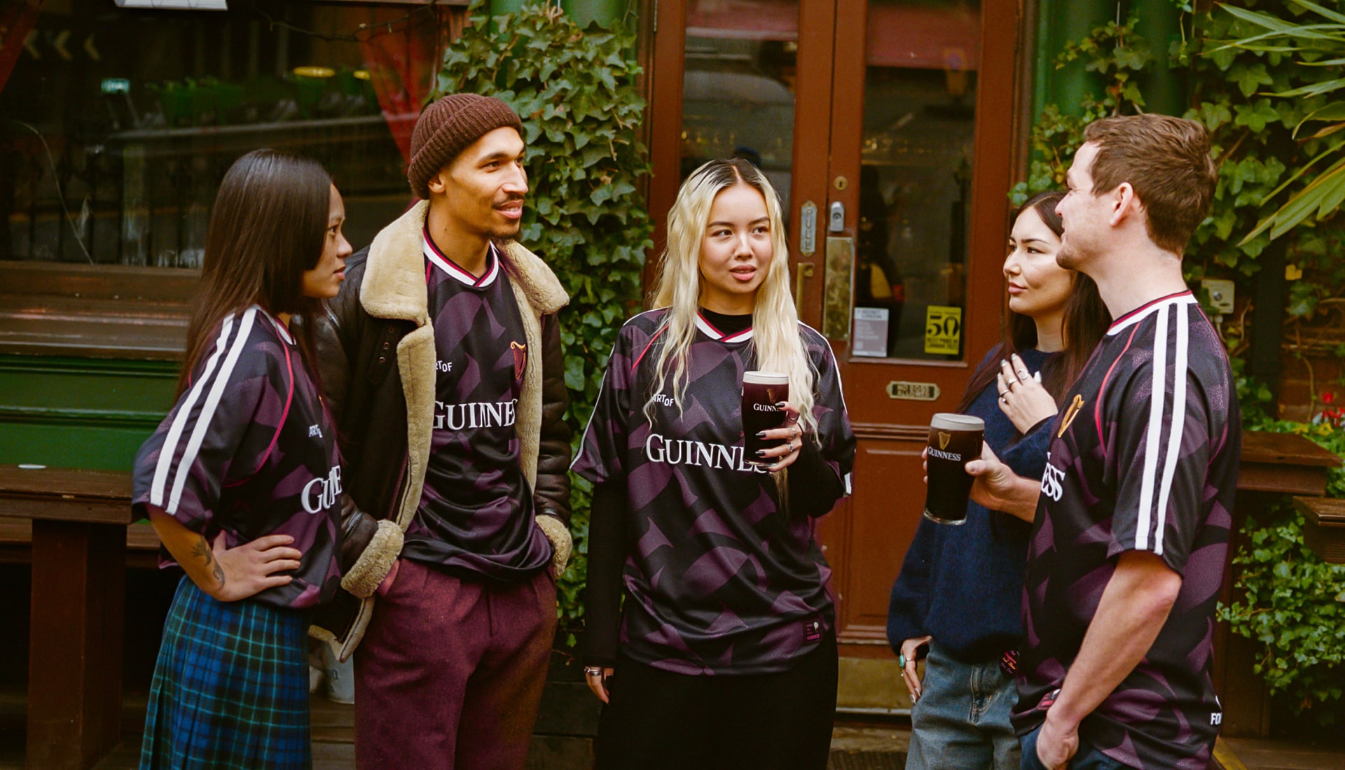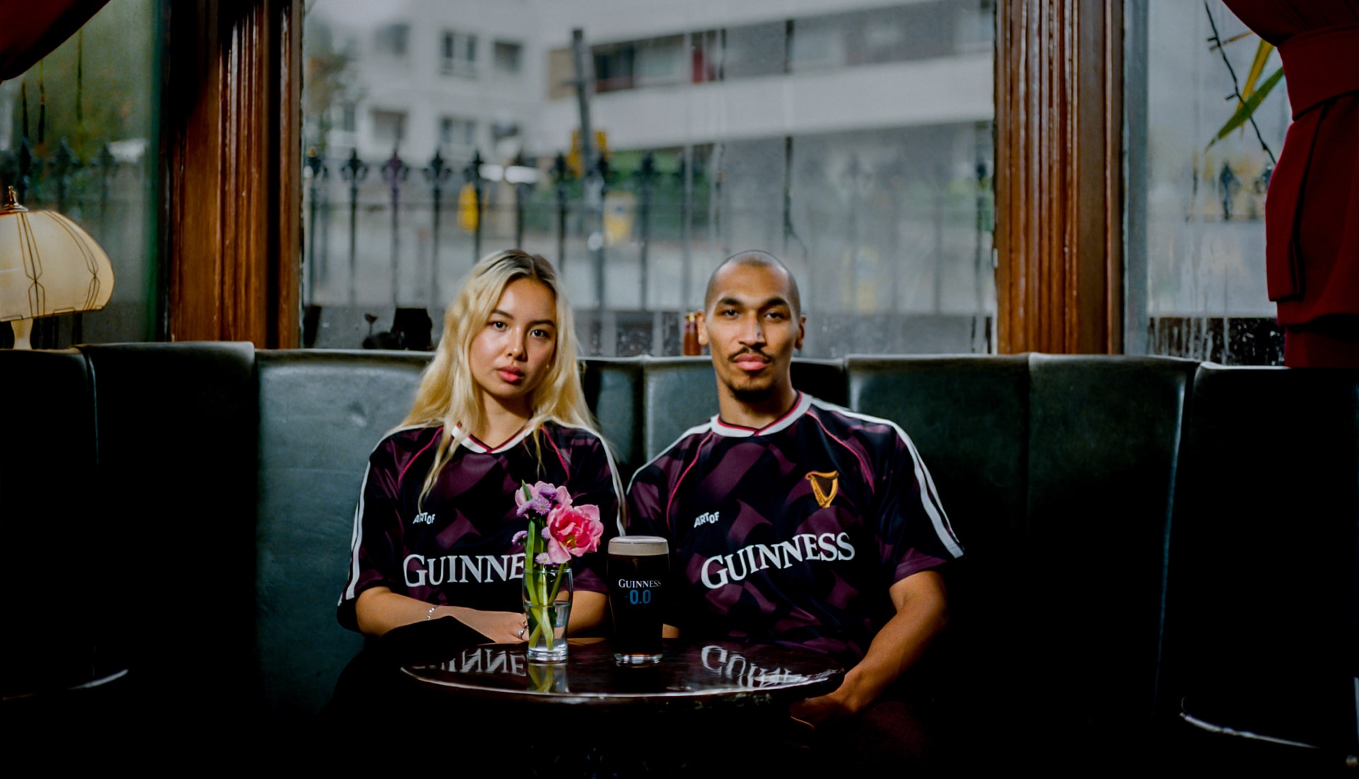 The aesthetic pulls straight from the golden age of early ’90s football design — a period where silhouettes were looser, collars were bolder, and pattern work carried personality rather than polish. Here, those cues are reimagined through Guinness’ visual DNA: a textured “G” motif that rises like the surge in a perfectly poured pint, settling into a deep ruby base tone that mirrors that iconic moment when stout becomes still. It’s colour as storytelling — patience, craft, togetherness, all captured in a single shade.