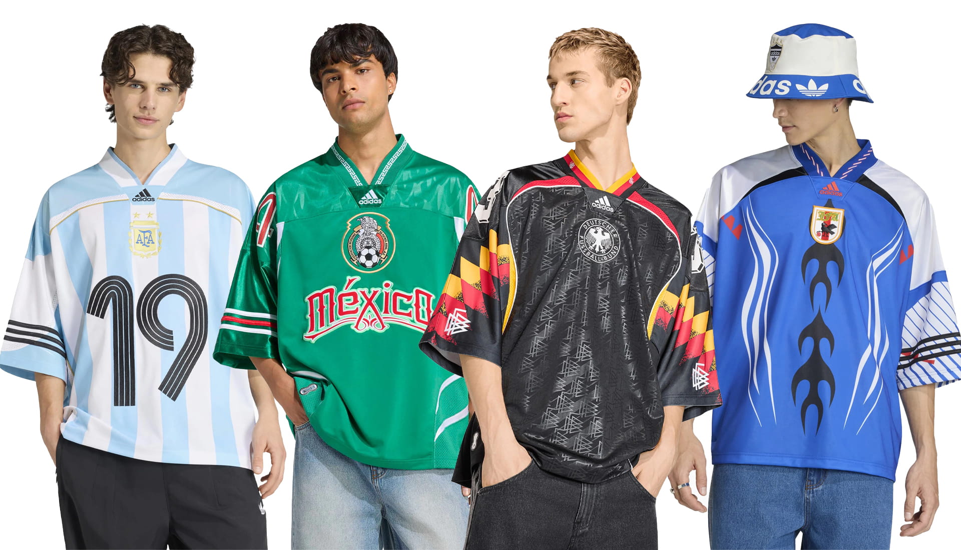 Pulling inspiration from iconic retro shirts, adidas reworks classic looks from four of its leading federations — Mexico, Germany, Japan and Argentina — and flips them into oversized, street-ready statements. Familiar colours, bold graphics, baggy fits… it’s a proper conversion of on-pitch DNA into everyday wear, blurring the line between football heritage and streetwear energy. These are Football shirts made for the streets, loaded with history, attitude, and undeniable style. This is how you rep your country in 2026 — and beyond.
