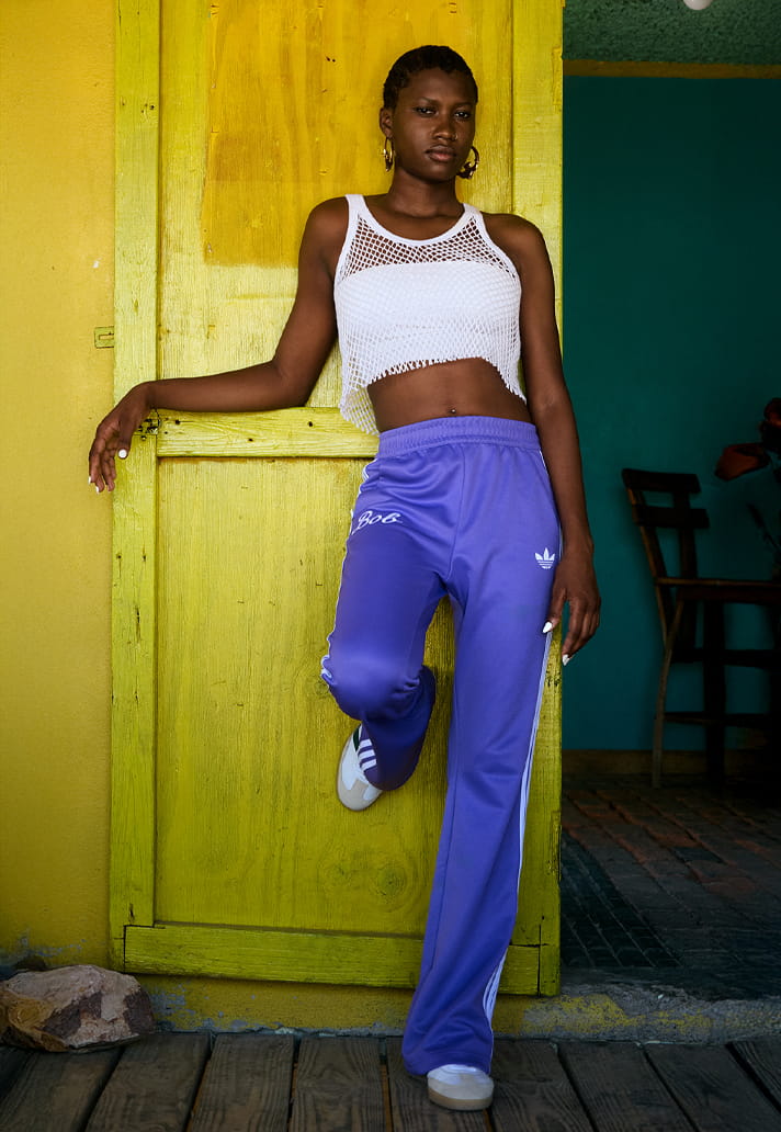 The full‑zip track jacket lands as another standout, arriving in rich emerald with the same expansive “Football Freedom” graphic stretching across the back panel. Paired with purple track pants inspired by Marley’s original Firebirds, the tracksuit bridges classic adidas DNA with a fresh contemporary edge. The result is a silhouette that could just as easily walk out of Kingston in the ’70s as out of a terrace culture photoshoot today.