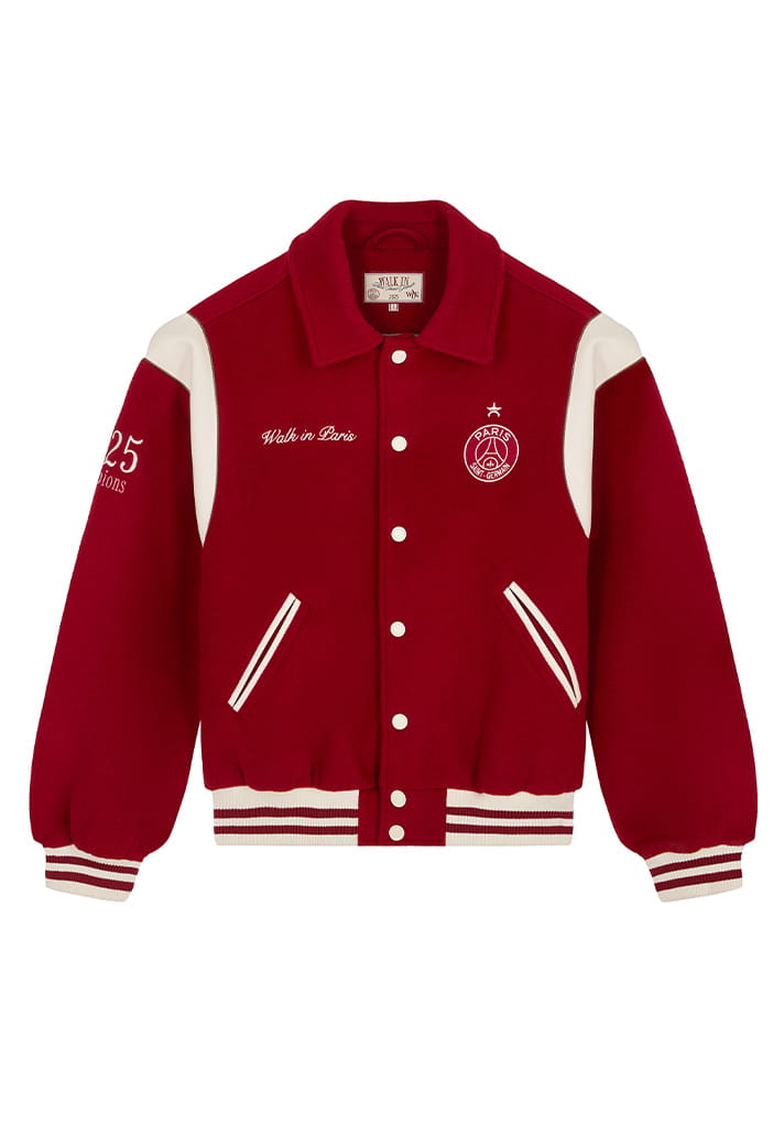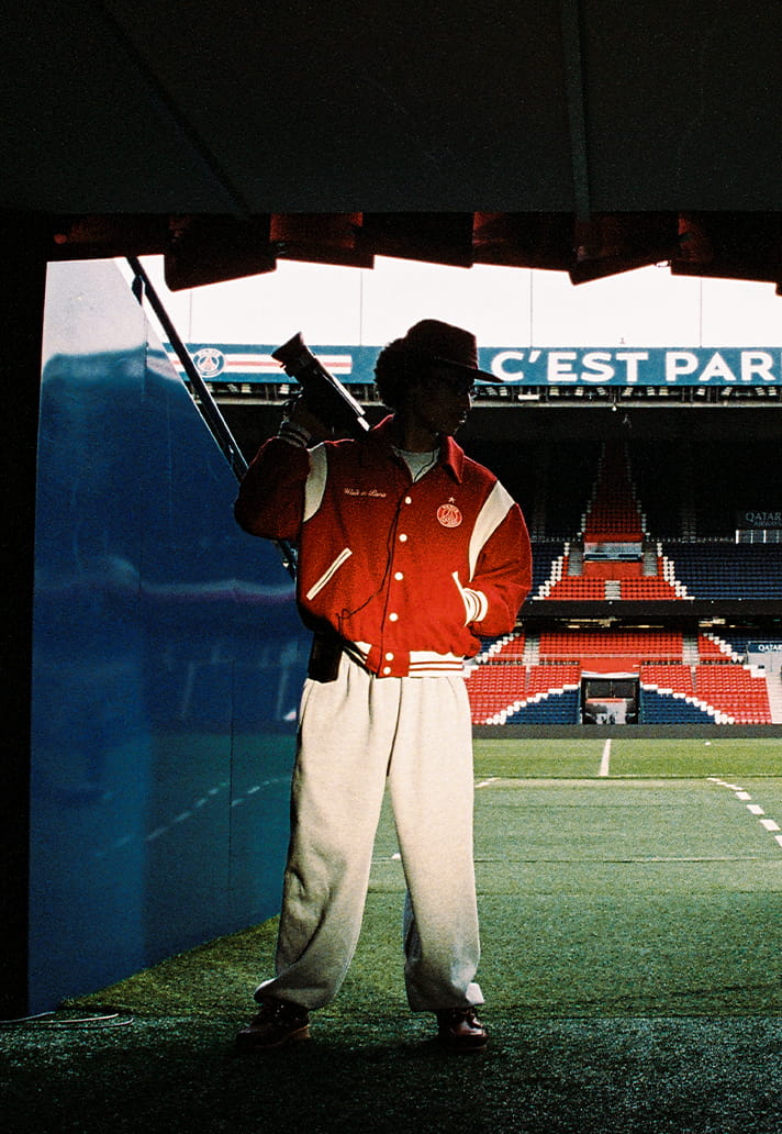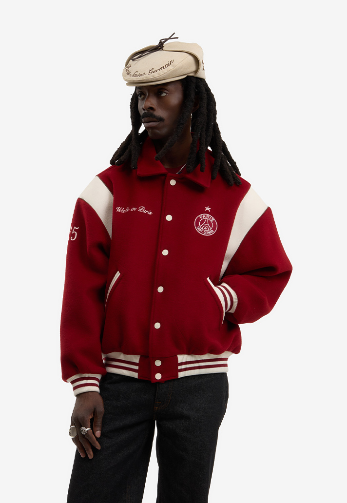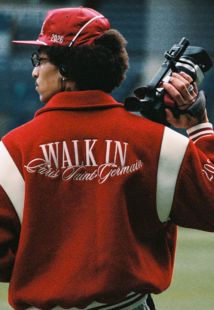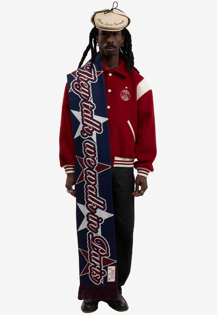 For PSG, they’ve channelled that aesthetic into a limited‑edition capsule that just gets it: a varsity jacket, a T‑shirt, a scarf and, of course, the signature beret‑cap – a Walk In Paris calling card. Refined, minimal, but with a posture that stands tall. It’s football merch, sure, but only in the most elevated sense of the term.