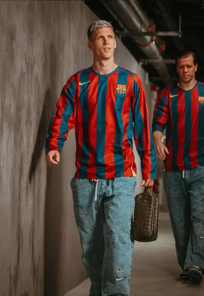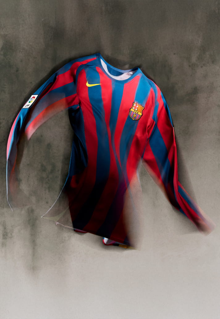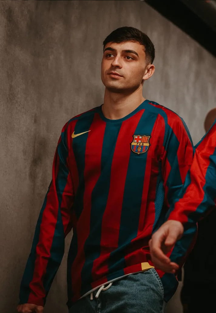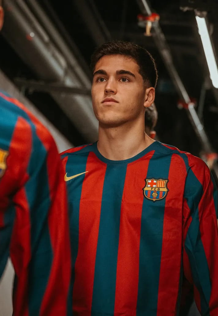 Debuted by the men's first team squad ahead of their game against Rayo Vallecano this weekend, Barça and Nike have re-released the legendary 2005/06 home jersey, and I have to say: I absolutely love it. It’s the latest example of Nike really committing to digging back into their frankly ridiculous archive. Sure, on paper it’s “just another retro drop,” but this one hits top bins. It’s pure, distilled nostalgia, a tribute not only to one of the greatest teams ever assembled, but to the era, the attitude, and the player who defined it all.
