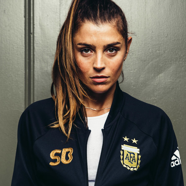A creation of custom threads in collaboration with adidas Football and Chain Gang L.A., we take another look at this one off Argentina Anthem Jacket created at the Los Angeles Mercury Centre, modelled here by Florencia Galarza.