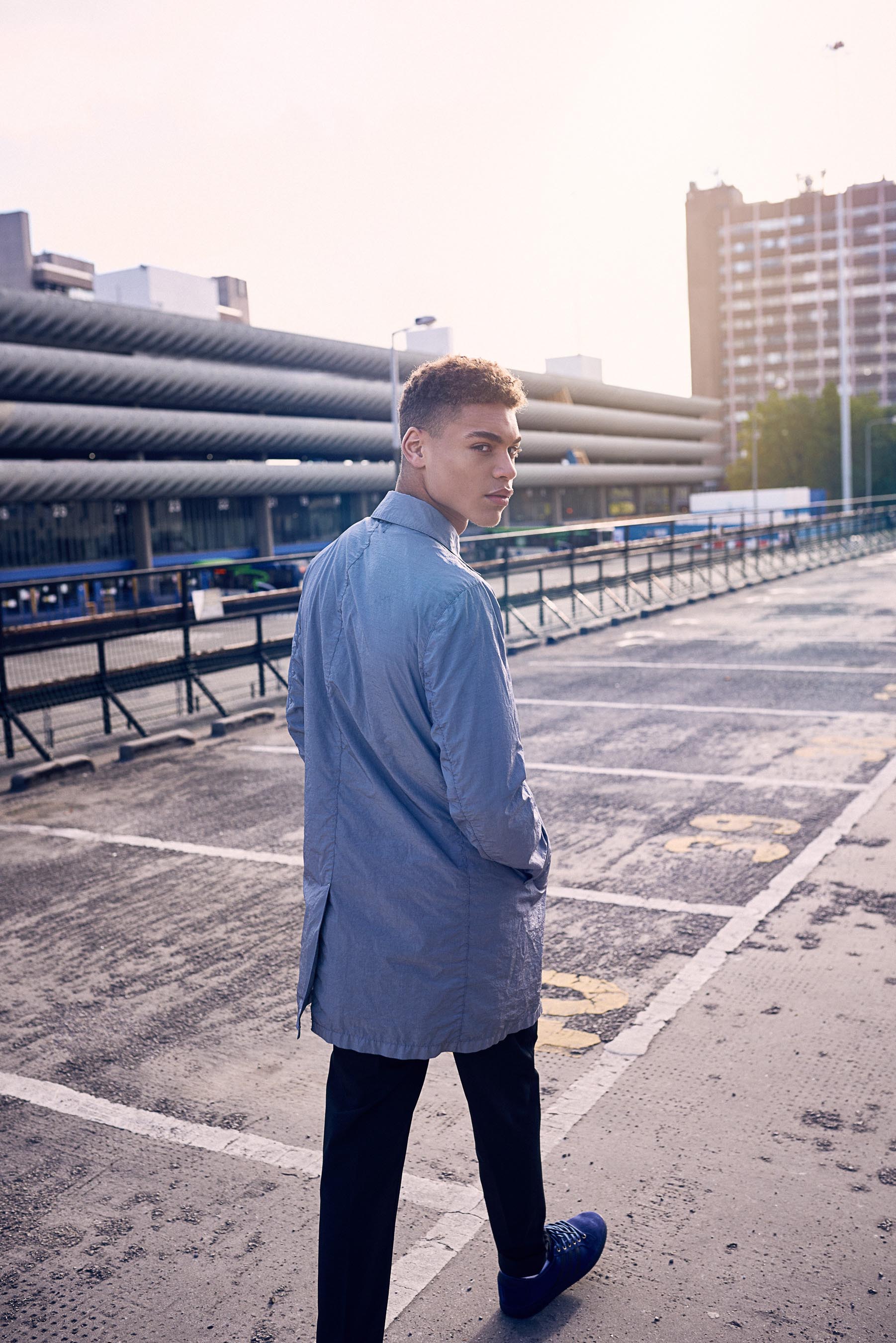 Stussy Cap. Samsoe + Samsoe Jacket. Barbour x White Mountaineering Jumper. Wax London Joggers. Aquascutum Trainers.