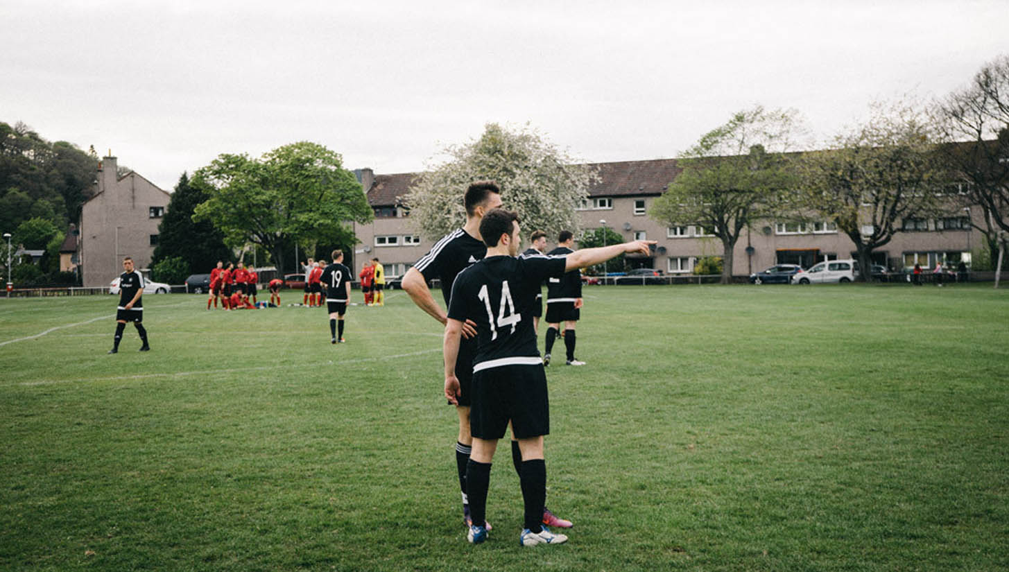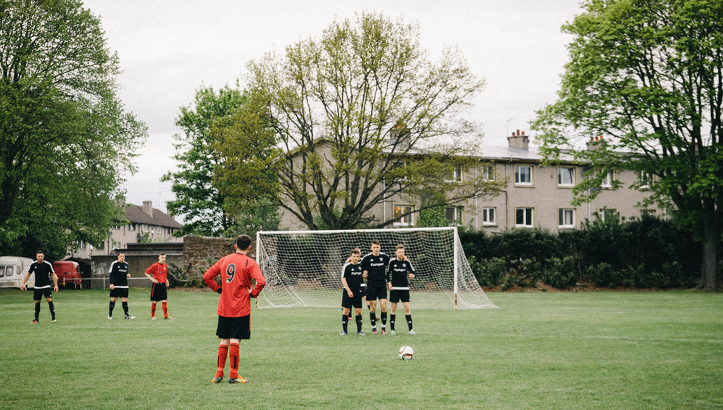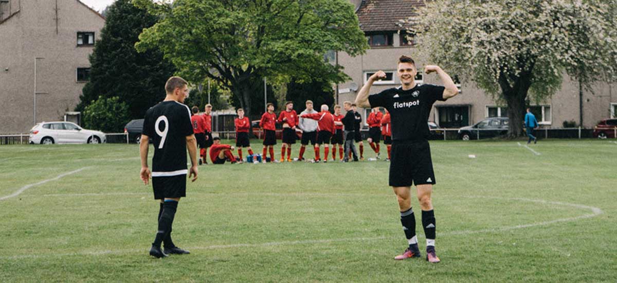 A pure meeting of minds, this is a perfect nod from those dominant in the skate, street and fashion scenes towards football. A game well dressed and styled throughout, this collaboration is what it's all about: finding that perfect niche story and celebrating it in the most perfect sense. To that effect, Drakies FC are a club who play in the Inverness & District Amateur League and to a certain extent have been plucked from the middle of nowhere to join a Flatspot party. Adding another level of flavour, Flatspot created the special edition team kit you see below and in turn they brought in illustrator Matt Blease to create a quite frankly delicious crest.