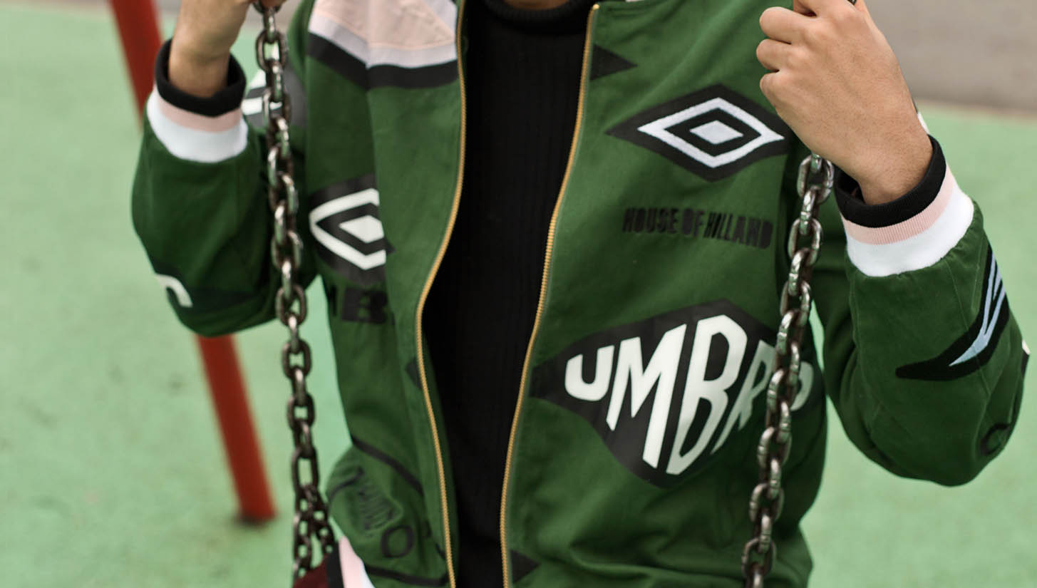 A doubled diamond link up that serves up heavy graphics, mouth watering shapes and a fashion focused take on one of football's most formative brands. Adding his take on proceedings and offering us a fresh look at what is one of the hottest jackets in football, Martyn Ewoma has shot this look book that puts the work of Henry Holland, his team and Umbro right back in the retina.