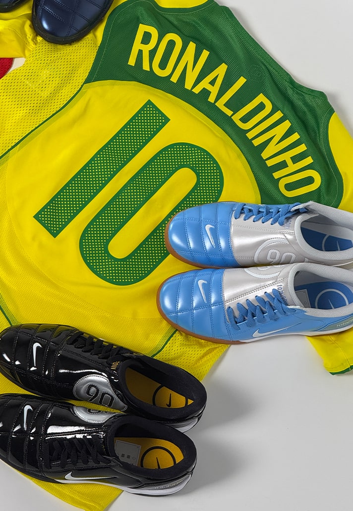 At the heart of the comeback was a series T90 lifestyle sneaker, extending their reach off the pitch and onto the streets. The series brought back those unmistakeable silhouettes and energy, with off-centred laces and that iconic circle 90 graphic we all know and love. Nike went hard with these drops, launching 12 different colourways, some of which paid homage to some of the boldest look of Nike past. The red/white slash T90 III vibes, the white/gold Adriano energy, and of course the infamous black/silver worn by Ronaldinho. These sneakers didn’t just nod to the beautiful game, they spoke it fluently.