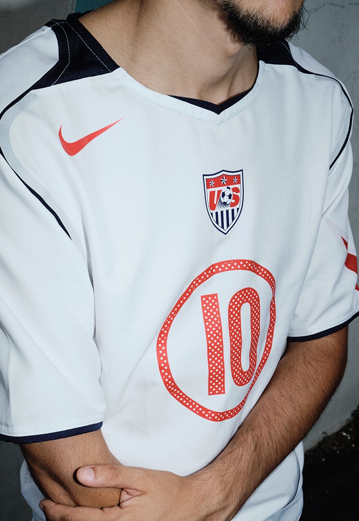 Then came the apparel, and this is where Nike went full archive mode. Probably the most popular of the drops – the boxy, era accurate jerseys reissued with the classic T90 silhouettes and with tributes to some of the most iconic Nike athletes to wear each one. Brazil 2004, think Ronaldinho genius. Portugal 2004, reliving master of the wing Luis Figo. Netherlands 2004, Ruud Van Nistelrooy goal hunter. USA 2004, American sweetheart Landon Donovan. South Korea 2004, the underrated brilliance of Ji Sung Park.