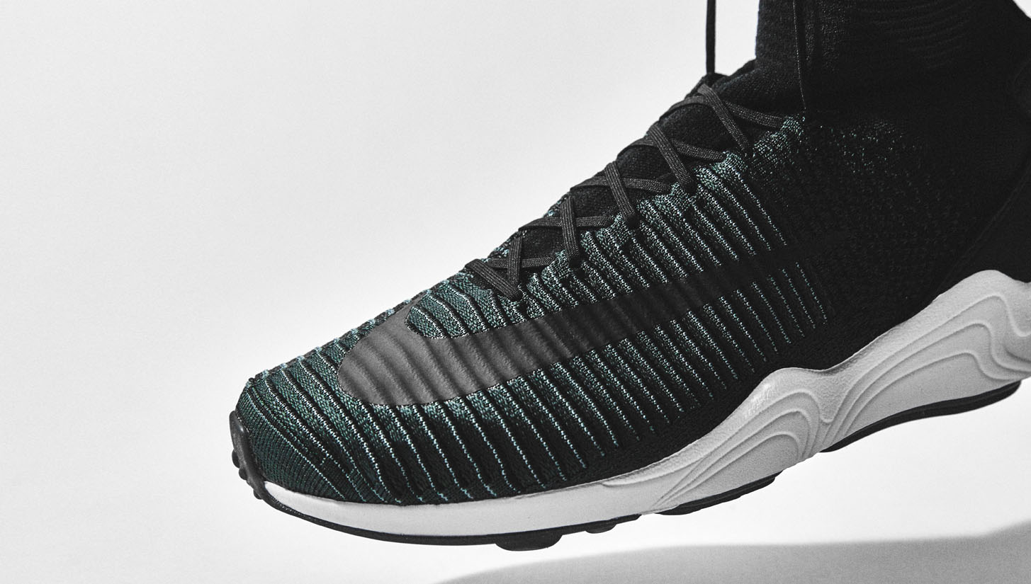 A crafted leather heel counter gives the Nike Zoom Mercurial XI a premium feel and the soft foam inner provides the plush cushioning. An adaptable sneaker, typical of Nike's football-inspired line-up that oozes versatility with sports and fashion outfits. Not as harsh as the all black edition, the "CR7 Chapter 3" update adds another stylish dimension to the Zoom Mercurial Flyknit movement.