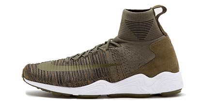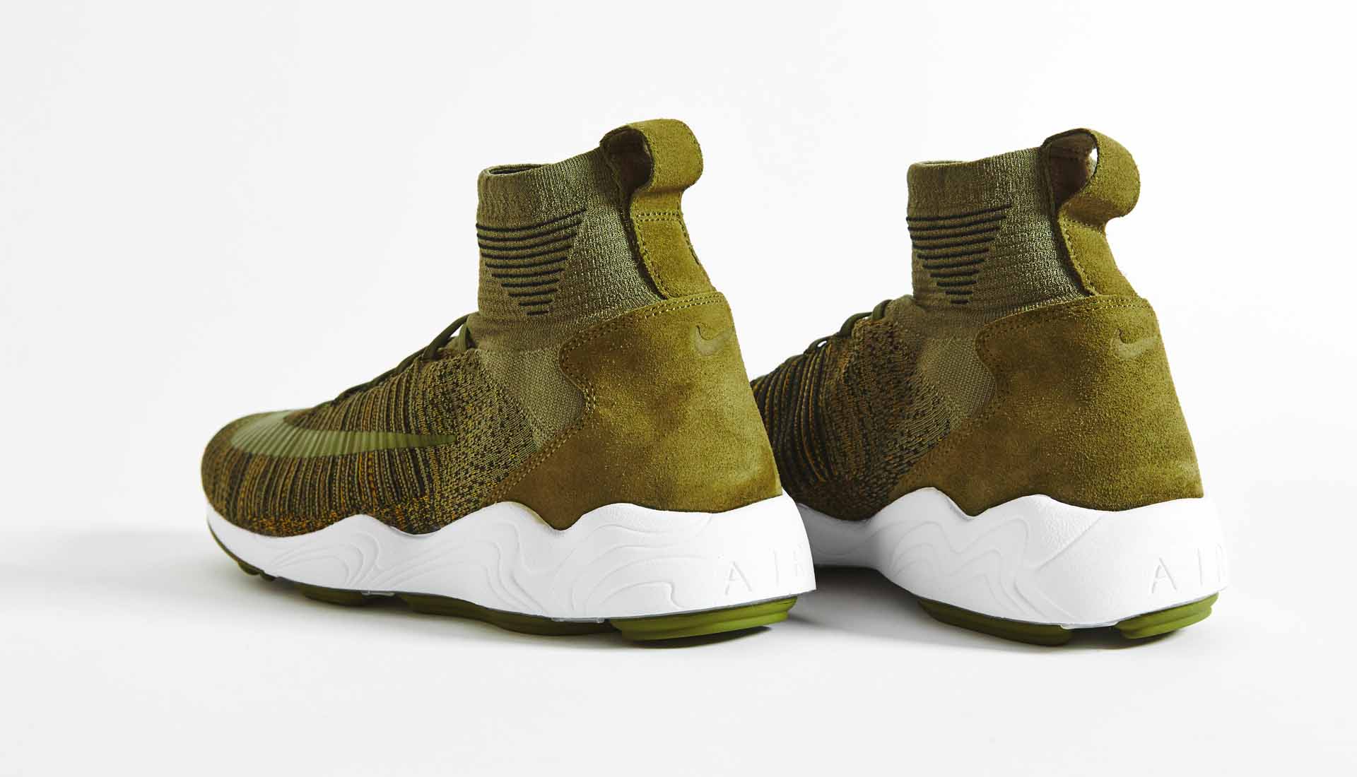 Built upon one of Nike's most comfortable platforms in the Zoom Spiridon's midsole cushioning, the Zoom Mercurial XI Flyknit is the result of how to merge football and lifestyle with stylish results. With an official title of "Medium Olive" the latest update provides a colourway that slides effortlessly away from the on-pitch scene.