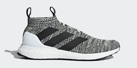 It's two in crisp and one with a twist from adidas, as black and white editions are joined by a 'Multi' option which is constructed using yarns from some of the most iconic ACE16+ Purecontrol UltraBOOST releases. A combination of black, neon yellow, blue, white and grey yarn combines for a unique Primeknit execution.