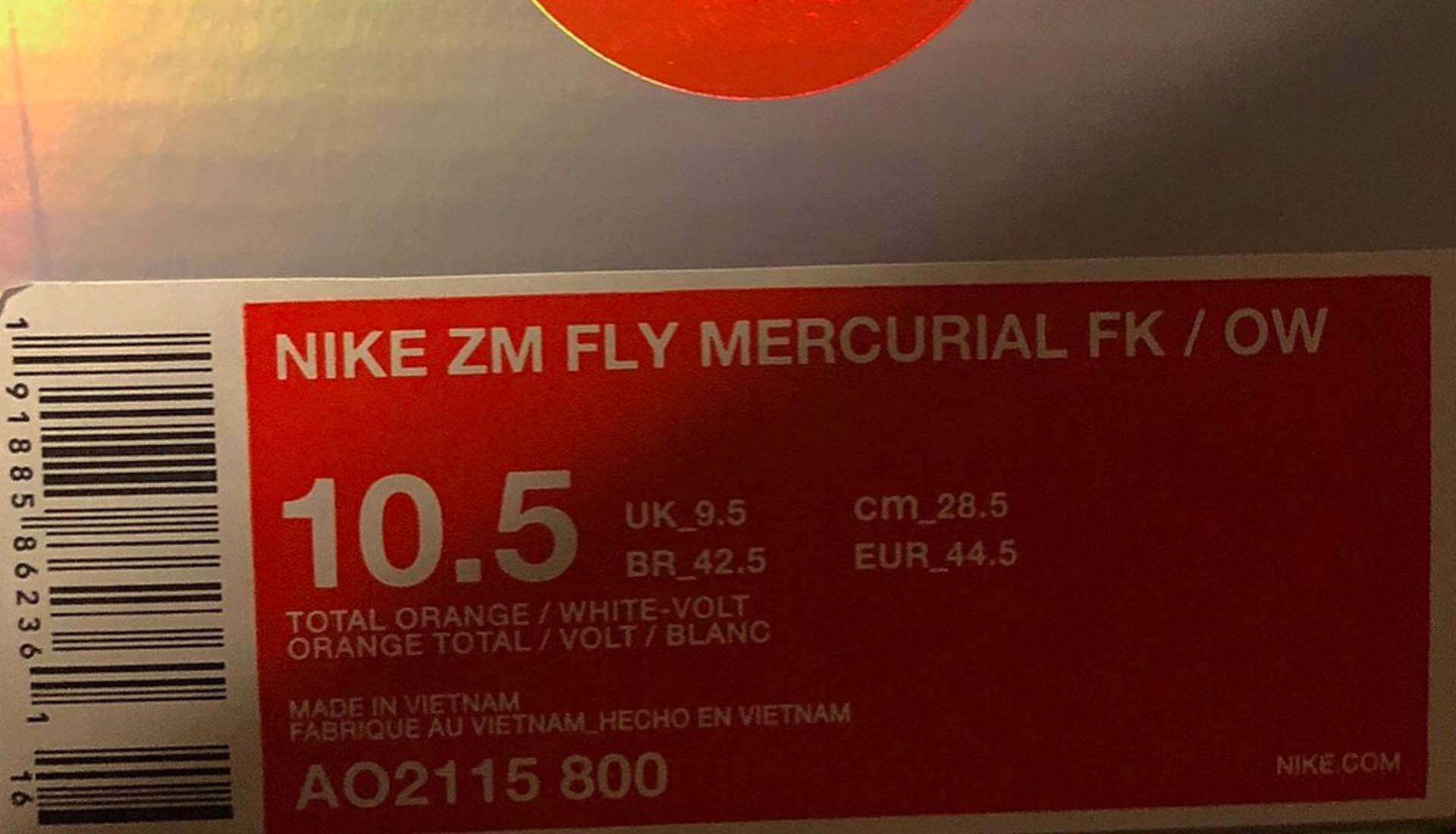 Virgil Abloh's Nike World Cup 2018 plans gather pace as a first look at the new Zoom Fly Mercurial Flyknit emerges. Dropping in the same aesthetic as the limited edition Mercurial Vapor 360 football boot, it's the latest piece in a hype heavy summer collab.