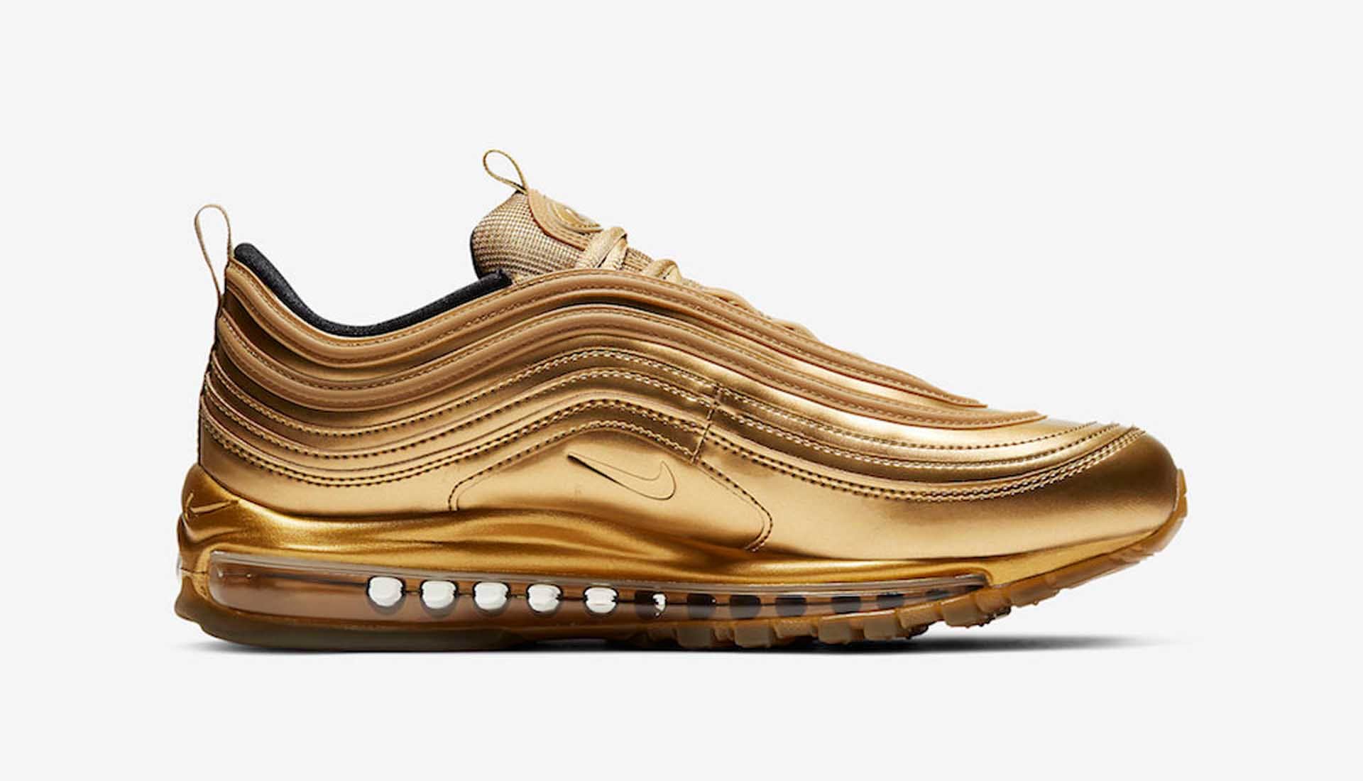 With the 2020 Olympic Games in Tokyo right around the corner, Nike have lifted the veil on a very special-looking Air Max 97 that takes inspiration from the ultimate prize on offer. The ‘Gold Medal’ Air Max sees the iconic silo given the midas touch, with an almost entirely gold look for a truly victorious vibe.