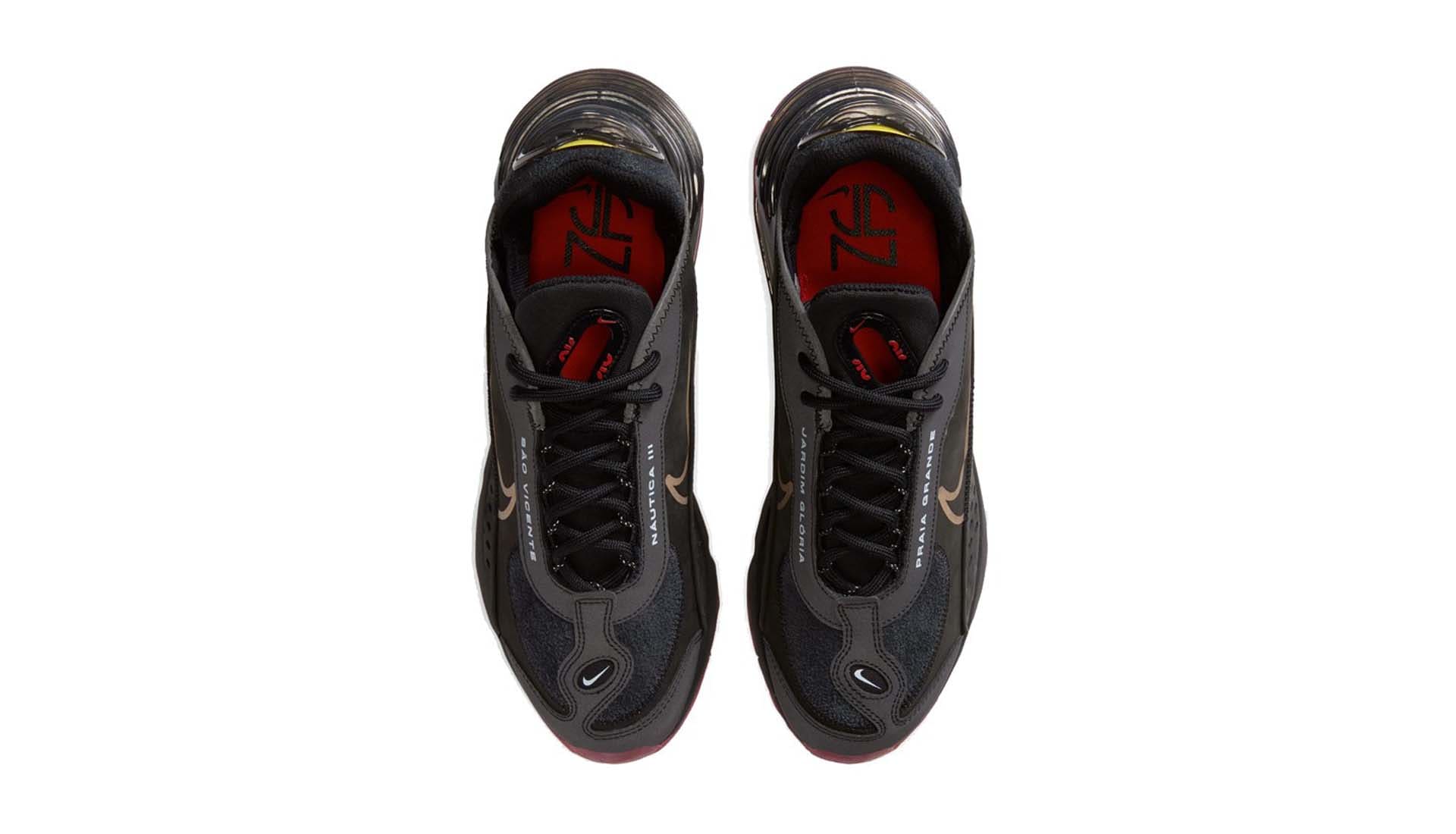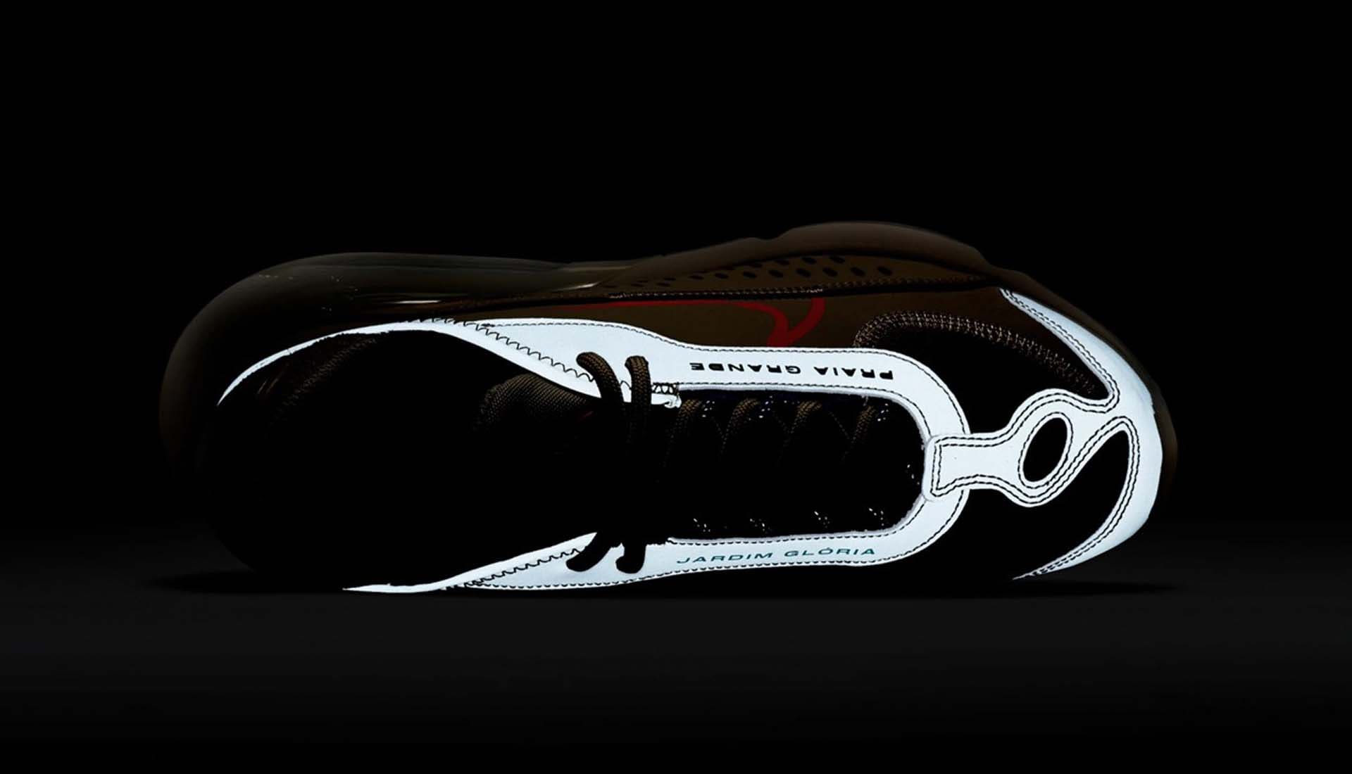 Each design uses special text to lock in its inspiration, with “Sao Vincente” and “Praia Grande,” on the lateral side, an acknowledgement of Neymar Jr.’s adopted home. Meanwhile, medial text is split between “Jardim Gloria” and “Nautica III” for nods to his Brazilian football school and childhood neighbourhood. The black version also features a hi-viz strip wrapped around the upper, revealed when the lights are switched off.