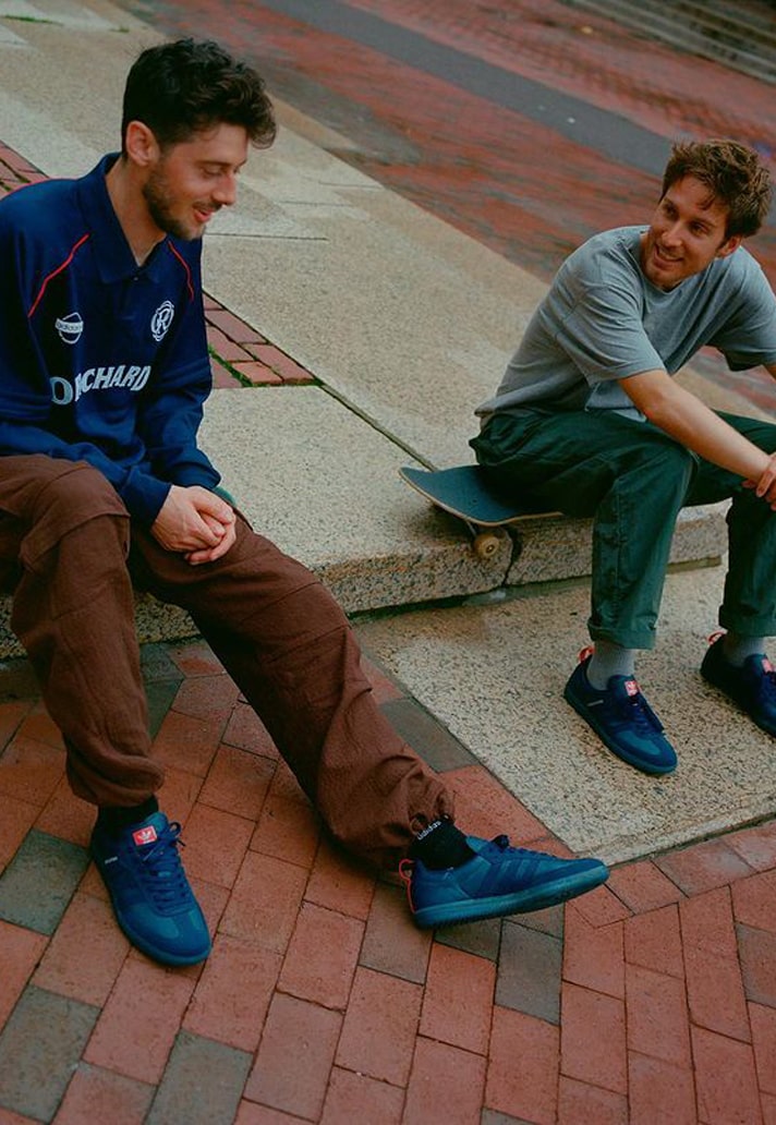 For the collection’s footwear, Orchard naturally opted for the Samba ADV—a heritage classic with roots in soccer. The Orchard x New England Revolution Samba ADV arrives in an indigo and red colourway, with Orchard’s name inscribed atop the serrated Three Stripes and New England Revolution’s logo appearing alongside the adidas Trefoil on the tongue. Built from synthetic leather and suede, the silhouette is equipped with ADV skate performance features to handle the board’s demands.