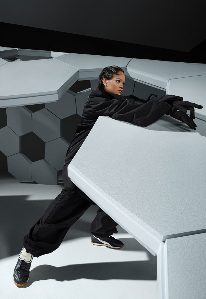 As Creative Director, Rihanna’s first FENTY x PUMA campaign – shot by Dennis Leupold with a set design inspired by the pentagon shape and stitching on a football – features notable names including Rihanna, A$AP Nast, Pure and Felix Mallard.
