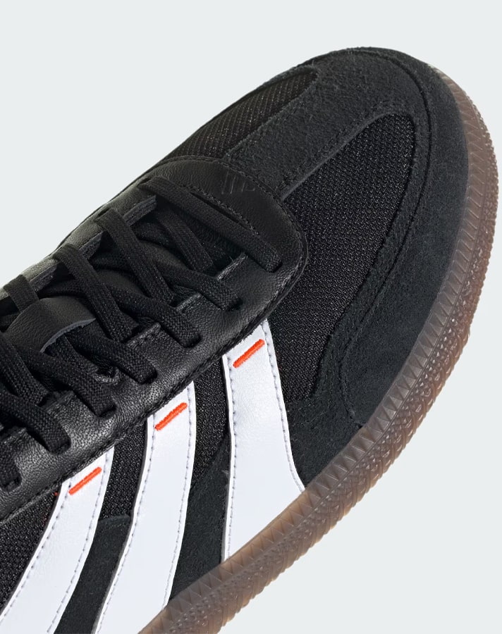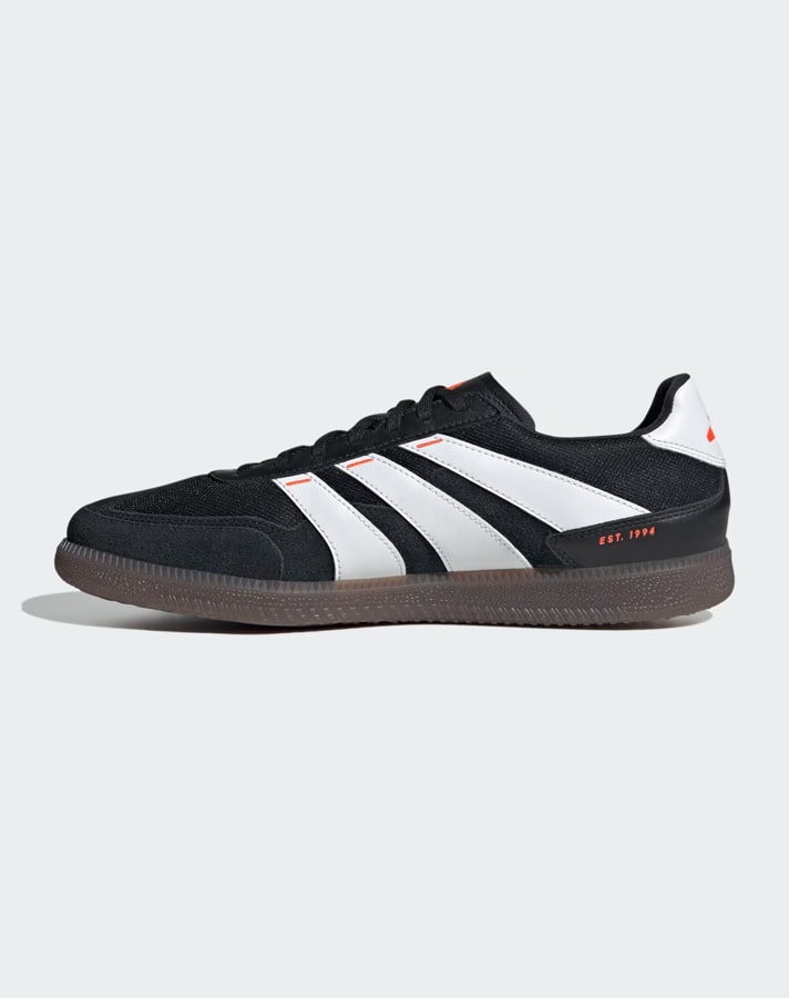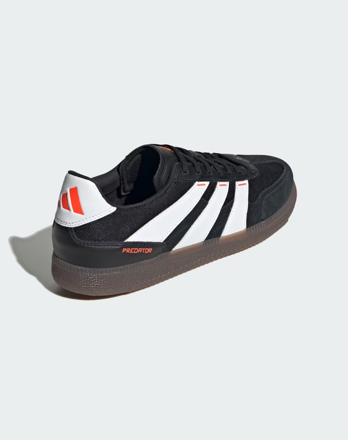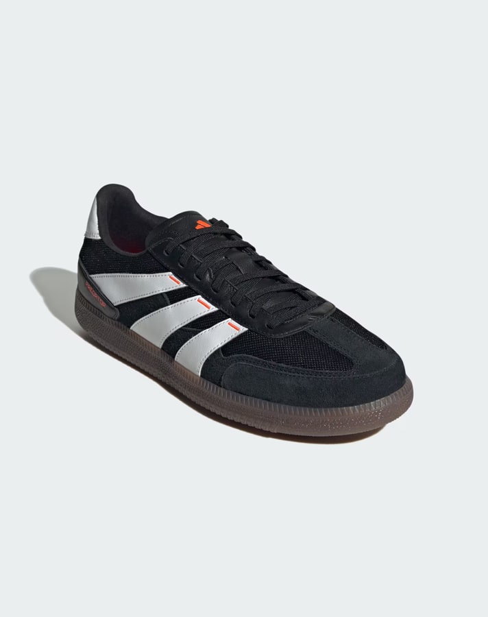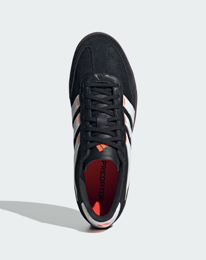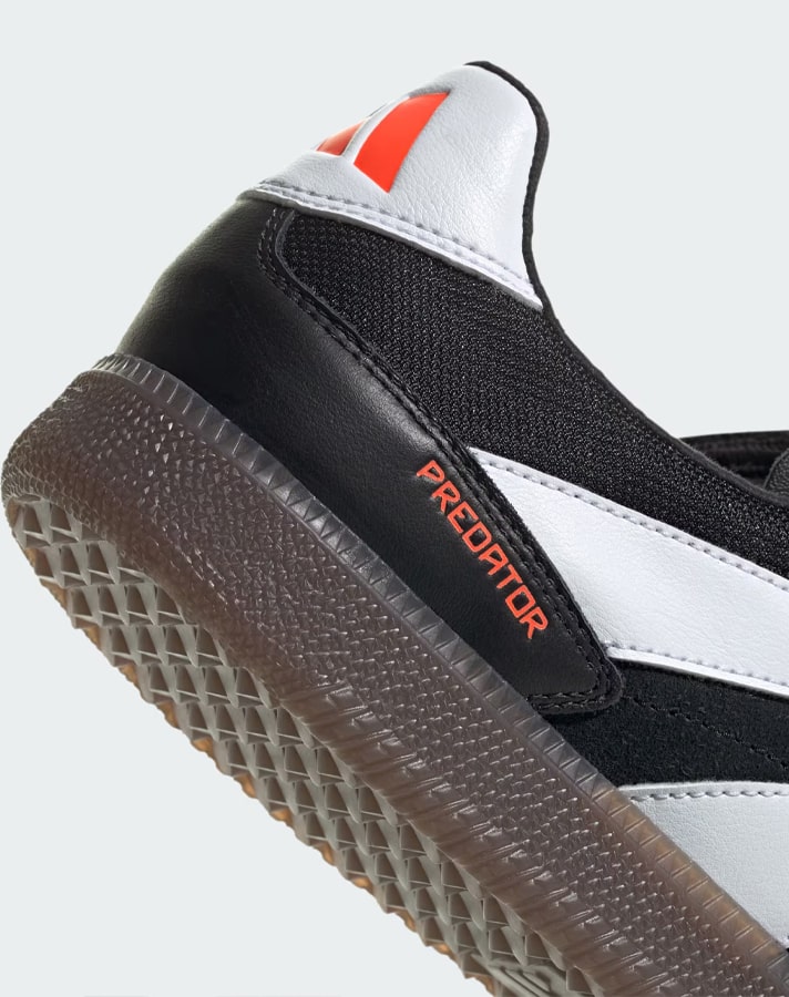 That Samba appeal is thanks mostly to that gum rubber outsole, while the Predator Freestyle sees the Three Stripes branding lifted straight off of the Predator 24 – themselves an homage to the iconic Three Stripes from the Accelerator. Presented in white, they sit on the black upper with minimal pops of the “Solar Red” from the boot featuring throughout, together combining for a classic Predator presentation. They share the same comfortable suede and mesh upper as the specialist indoor court Predators, but are not so obviously designed with performance in mind.