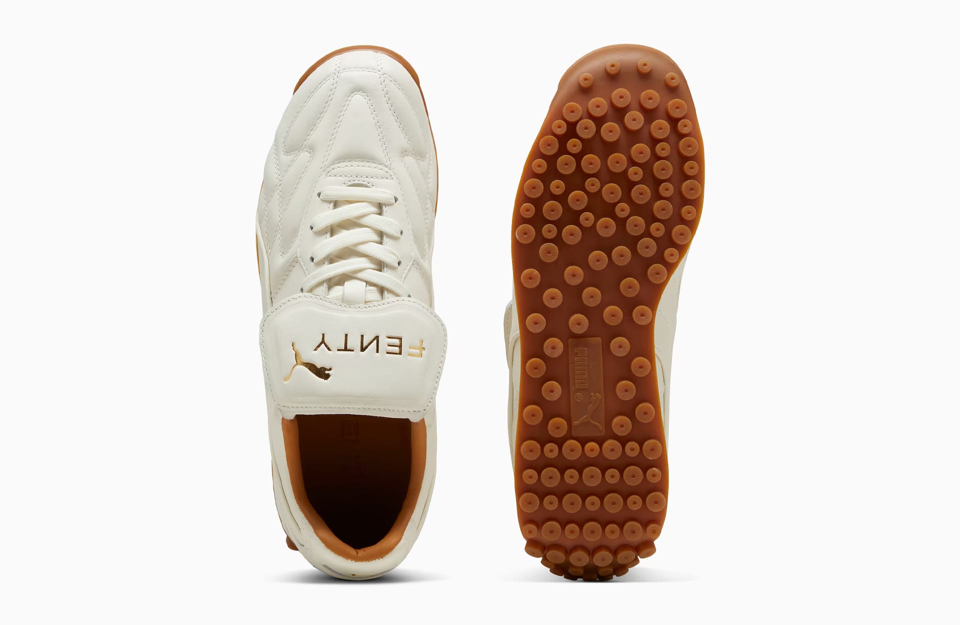 Both looks are still constructed from premium soft vintage leather, and they come complete with that fold over tongue that features a debossed and printed gold-foil FENTY and PUMA CAT logo. On the underside, they both ride in on that gum outsole and leather footbed.