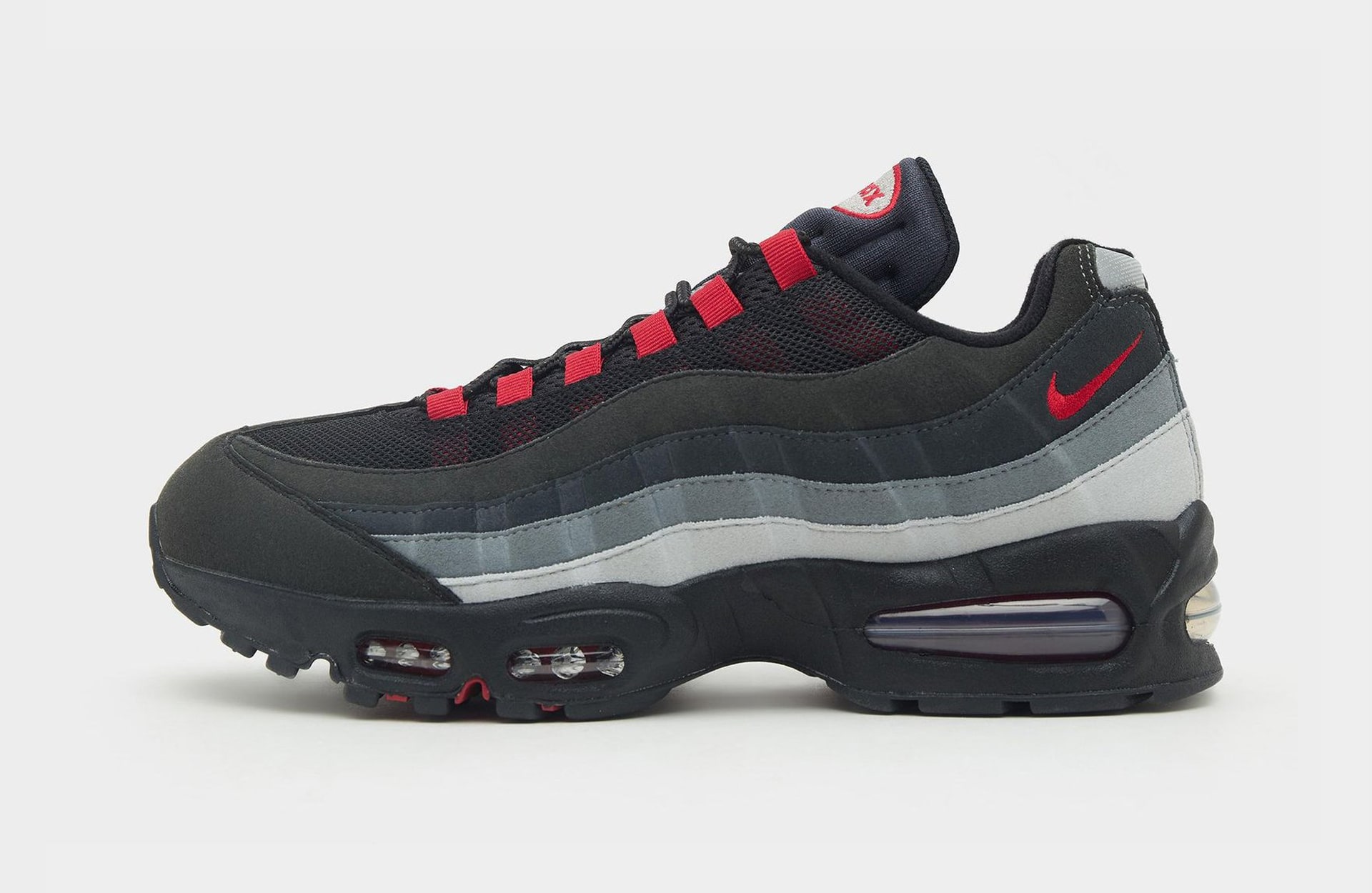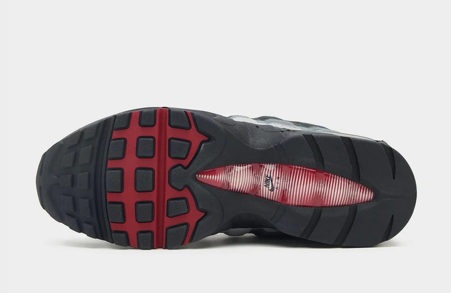 Despite not playing, on arrival Jarell Quansah was also seen wearing an Air Max 95 from the collection. The design features reverse “Smoke Grey” gradient sidewalls, complemented by black accents on the tongue and midsole. Eyelets and the tongue logo border stand out in “Gym Red,” matching the large bubble Air units reminiscent of this year’s Air Max 95 “Neon” retro. Liverpool FC branding remains subtle, with a Liver Bird logo discreetly placed on the inner tongue tag.