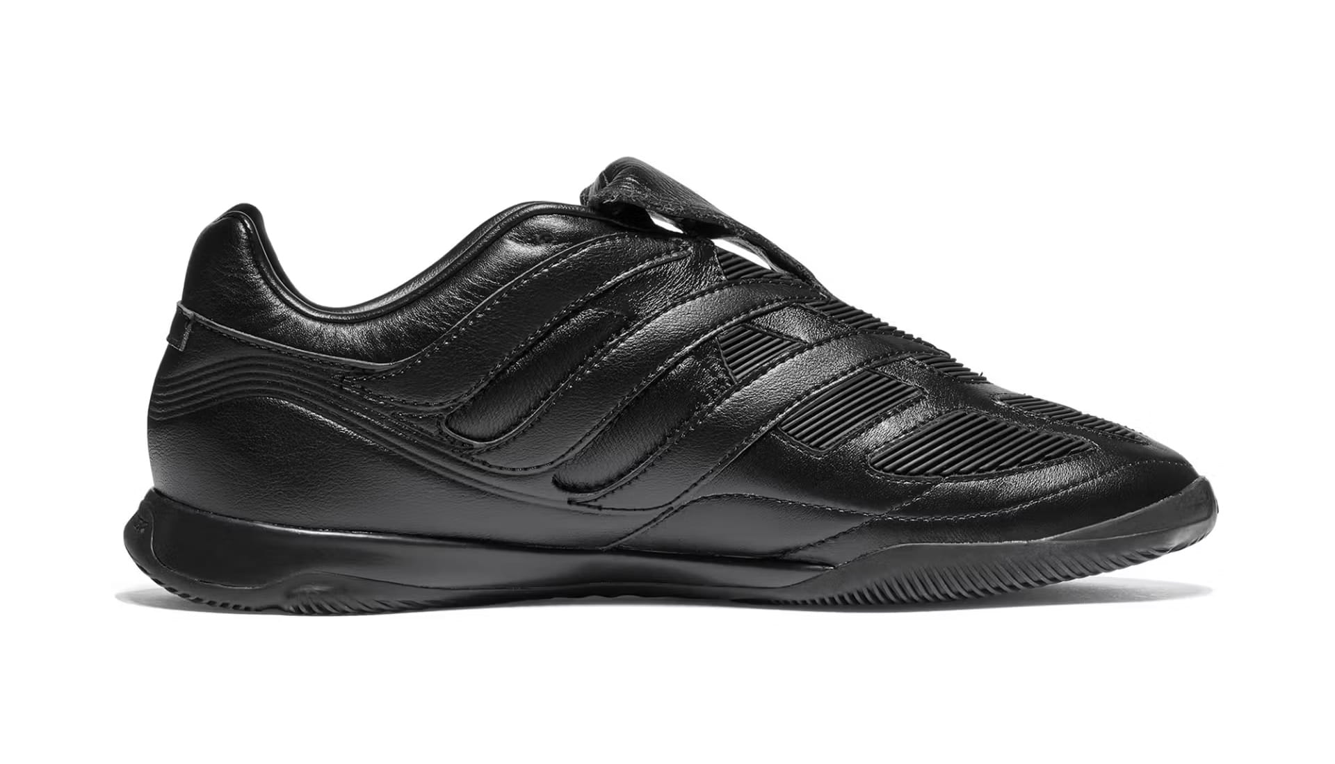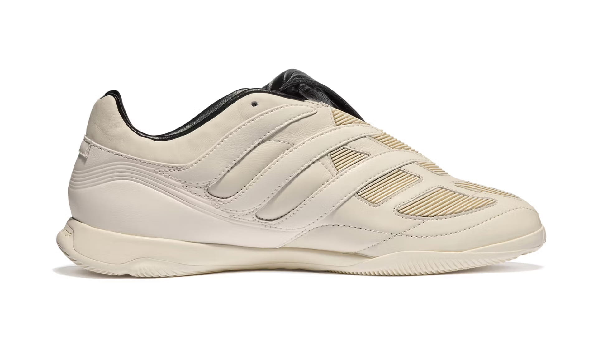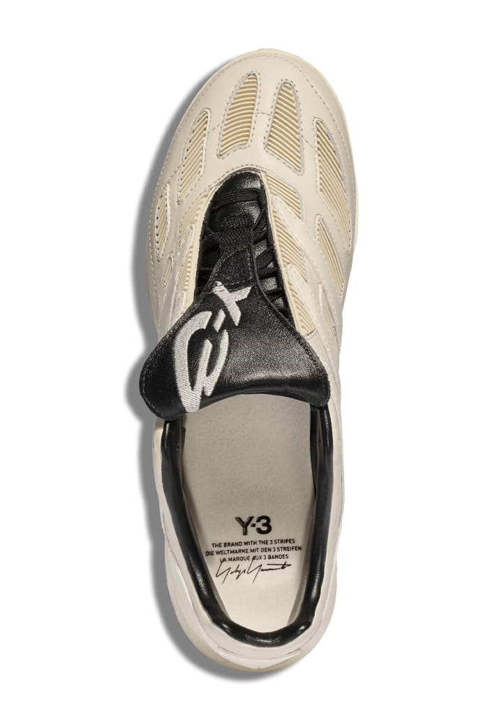 Two colourways define the pack. A full-black option puts the spotlight on the Predator’s sculptural build, letting the folded tongue and layered panelling do the heavy lifting. Alongside it sits a premium off-white pair, leaning into contrast through premium leather uppers and darker tongue detailing — a clear nod to the Y-3 Predator from 2024. Both retain the Precision’s signature DNA: exaggerated forefoot paneling, stitched strike zones and that unmistakable tongue. The difference lies in execution. Branding is kept deliberately low-key, allowing silhouette and construction to speak louder than logos ever could.