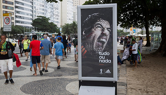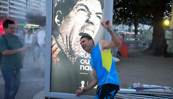 adidas have inadvertently created a brilliant photo opportunity on Copacabana Beach. The Luis Suarez billboard went almost unnoticed until Italy played Uruguay, now it's become one of the main photo attractions in Rio.