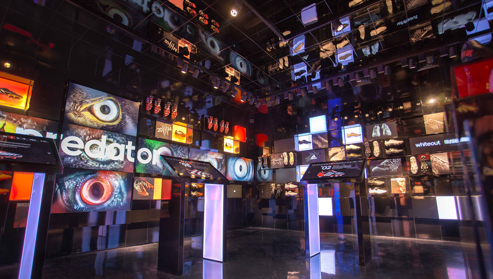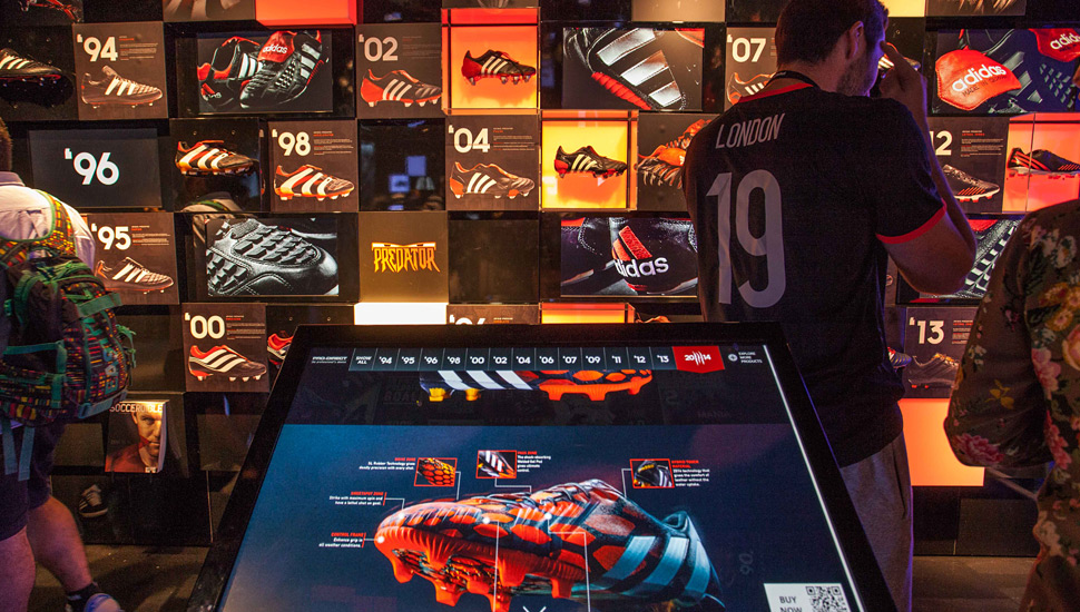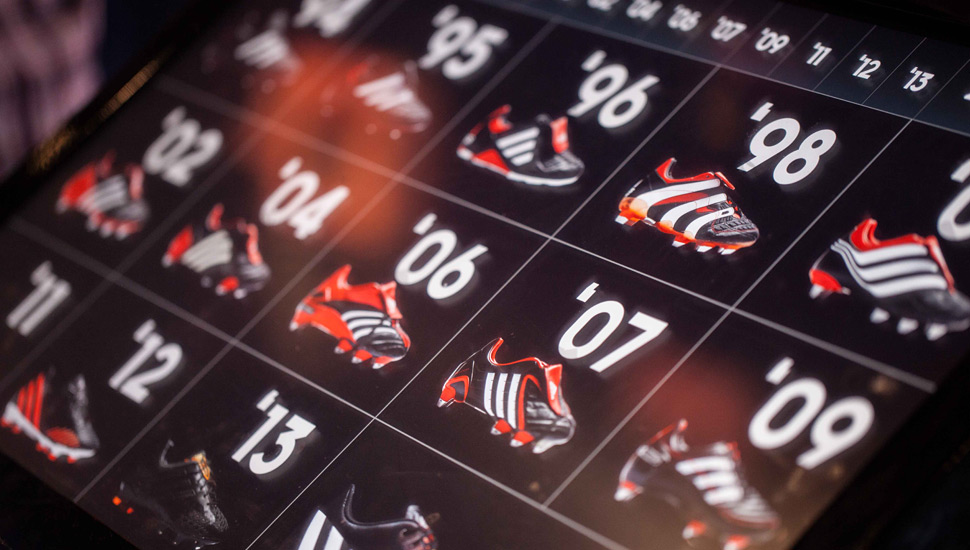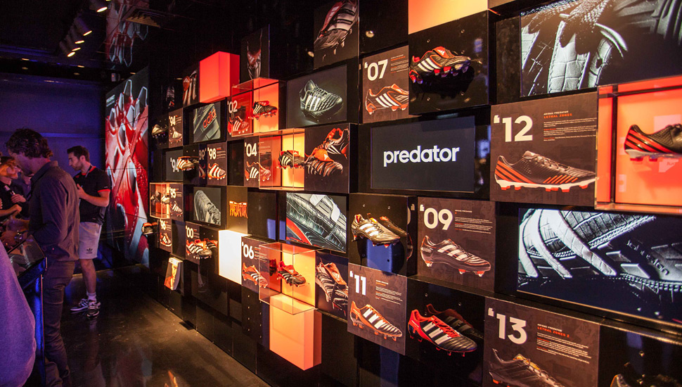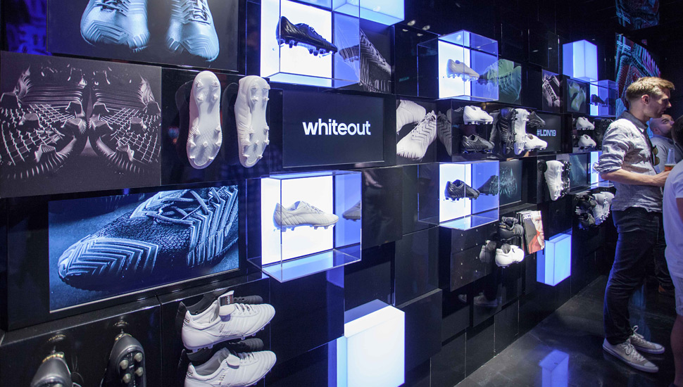 Pro-Direct Soccer's premier destination played host to an exclusive after-hours event showcasing the rich history and modern innovations of the famous adidas Predator. LDN19 opened its doors to select guests who were greeted by ultra-HD touch-screen monitors calling out the story of each Predator model and giant display screens paying tribute to 20 years of stand-out Predator moments and players.