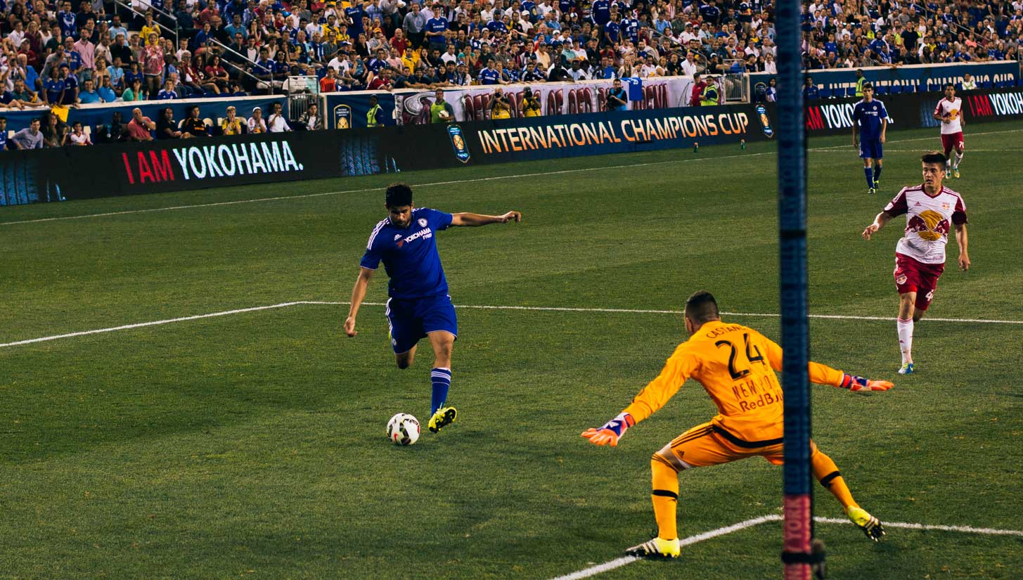 After hitting up New York City with adidas Football and attending an exclusive 2v2 tournament at Harlem FC with Chelsea first-teamers including Diego Costa and Oscar, we made the trip across the river to the Red Bull Arena to see how the Premier League champions would fare against the red half of the city in their pre-season opener and debut performance wearing the new adidas 2015/16 Chelsea home kit.