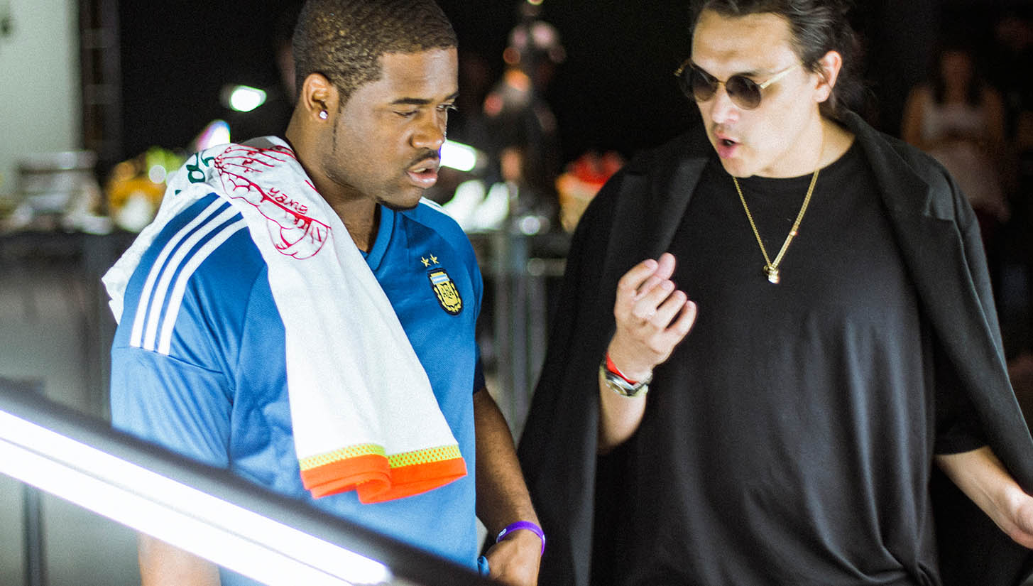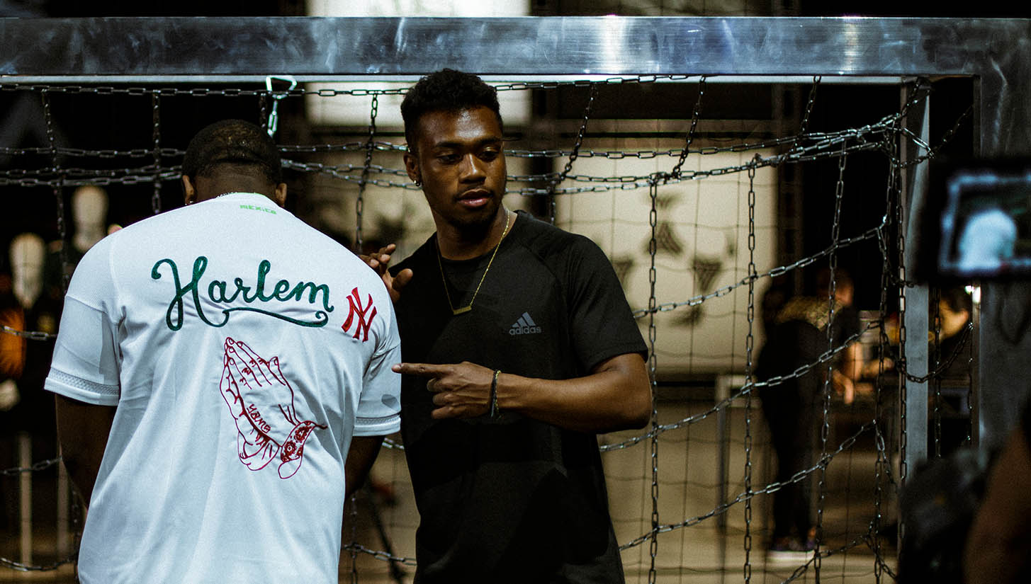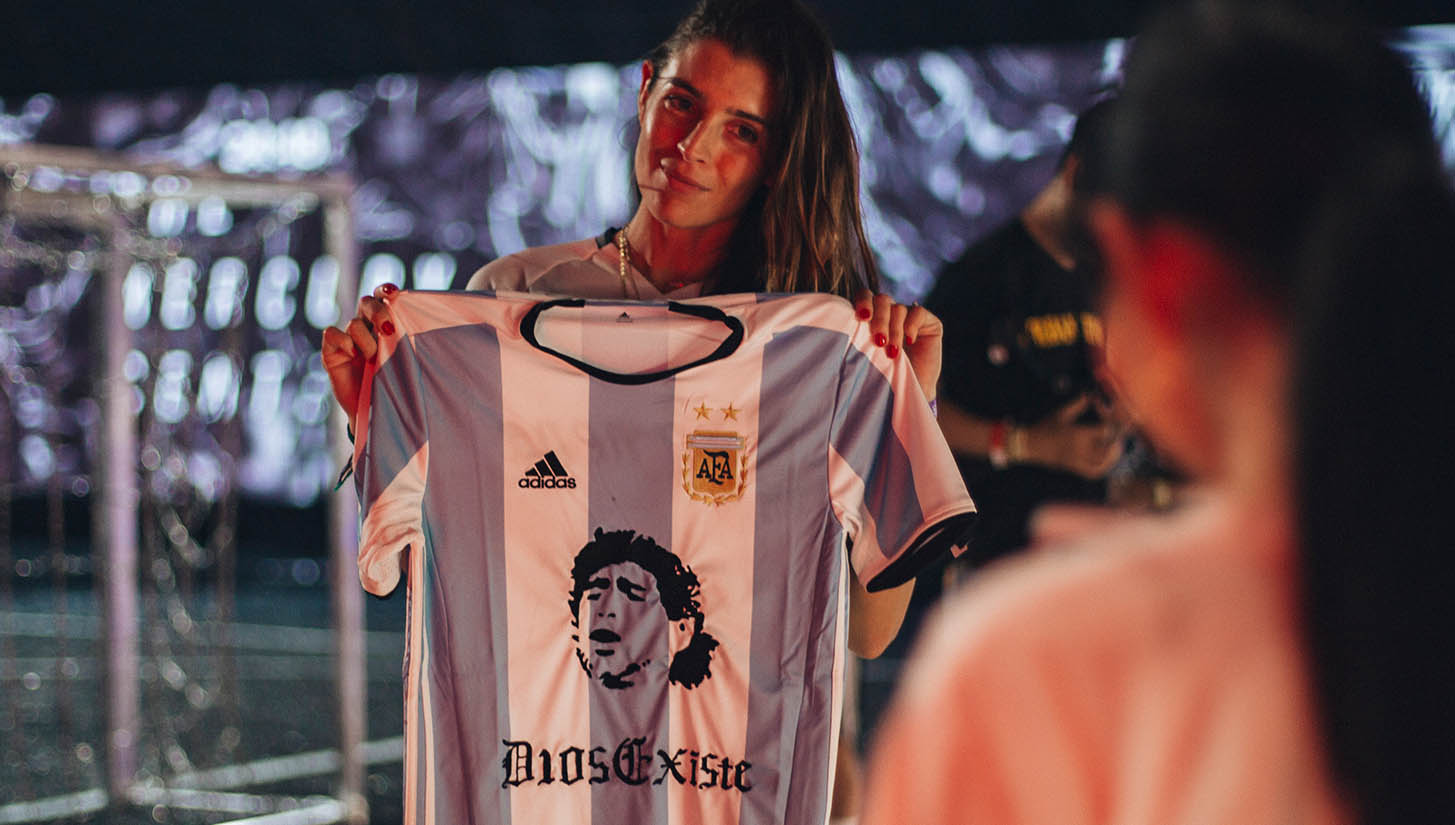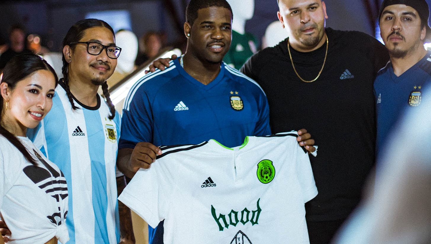 Dropping into the space over the weekend, Florencia Galarza along with hip-hop titan A$AP Ferg picked up some custom threads that were created then and there. Designers on hand, this collaborative process shows what can be done with a football shirt. Football is the platform, but music, art and design inspire much more cross-genre thinking from those donning the Three Stripes.